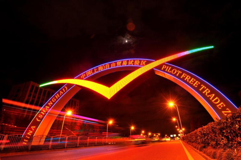 2013年9月29日,中国(上海)自由贸易试验区正式揭牌成立。为了打造自贸试验区的新形象,经过一个月的昼夜奋战完成了保税区2号门的改建工作。