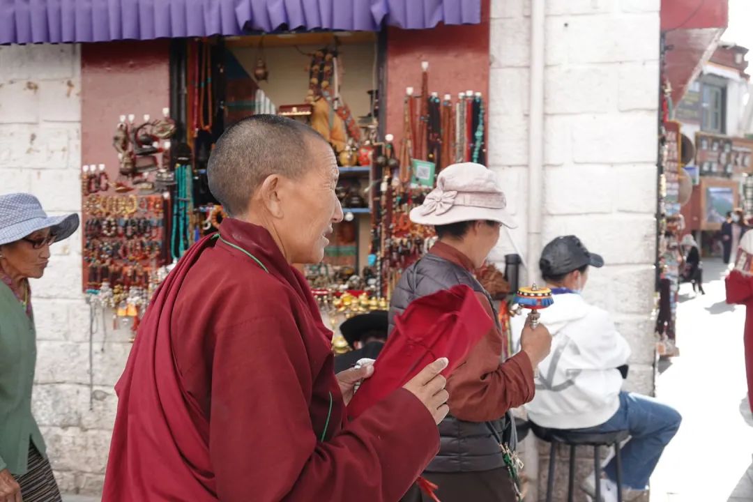 对于藏传佛教,我接触的并不多。早几年看过电影《冈仁波齐》,故事里的人们用一年多的时间从西藏的一个小村庄前往拉萨和神山冈仁波齐朝拜,2000多公里,他们一路徒步跪拜而去,朝圣心中的信仰,追随灵魂的神往。而今我身在西藏,看着转经道中一位位静静踱步的虔诚信徒,看着那手中一支支飞转的经纶,看着眼前最真挚的纯粹与质朴,这种信仰的力量,让我的内心震撼。“朝圣,不是给任何他人的交代,那是自己的事,绝不带半分虚假。”这句话放到我们每个人的生活、工作、家庭中也同样适用。