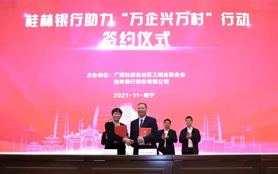 自治区工商联有关负责人对桂林银行积极支持民营企业发展,助力脱贫攻坚,推动乡村振兴作出的贡献给予充分肯定。他指出,开展“万企兴万村”行动是我区民营企业主动履行社会责任,助力乡村振兴战略、构建现代乡村产业体系的重要举措。各级工商联组织要提高政治站位,深刻认识开展“万企兴万村”行动,是巩固脱贫攻坚成果、促进乡村振兴的务实之举。希望金融机构面向乡村“放水养鱼”,为民营企业参与乡村振兴添薪助力;广大民营企业要积极投身“万企兴万村”行动,履行社会责任、展现企业担当;各级工商联组织要加强服务,积极建立银企对接长效机制,加强银企合作,引导金融活水流向广袤乡村,为乡村振兴提供有力支持、作出更大贡献。