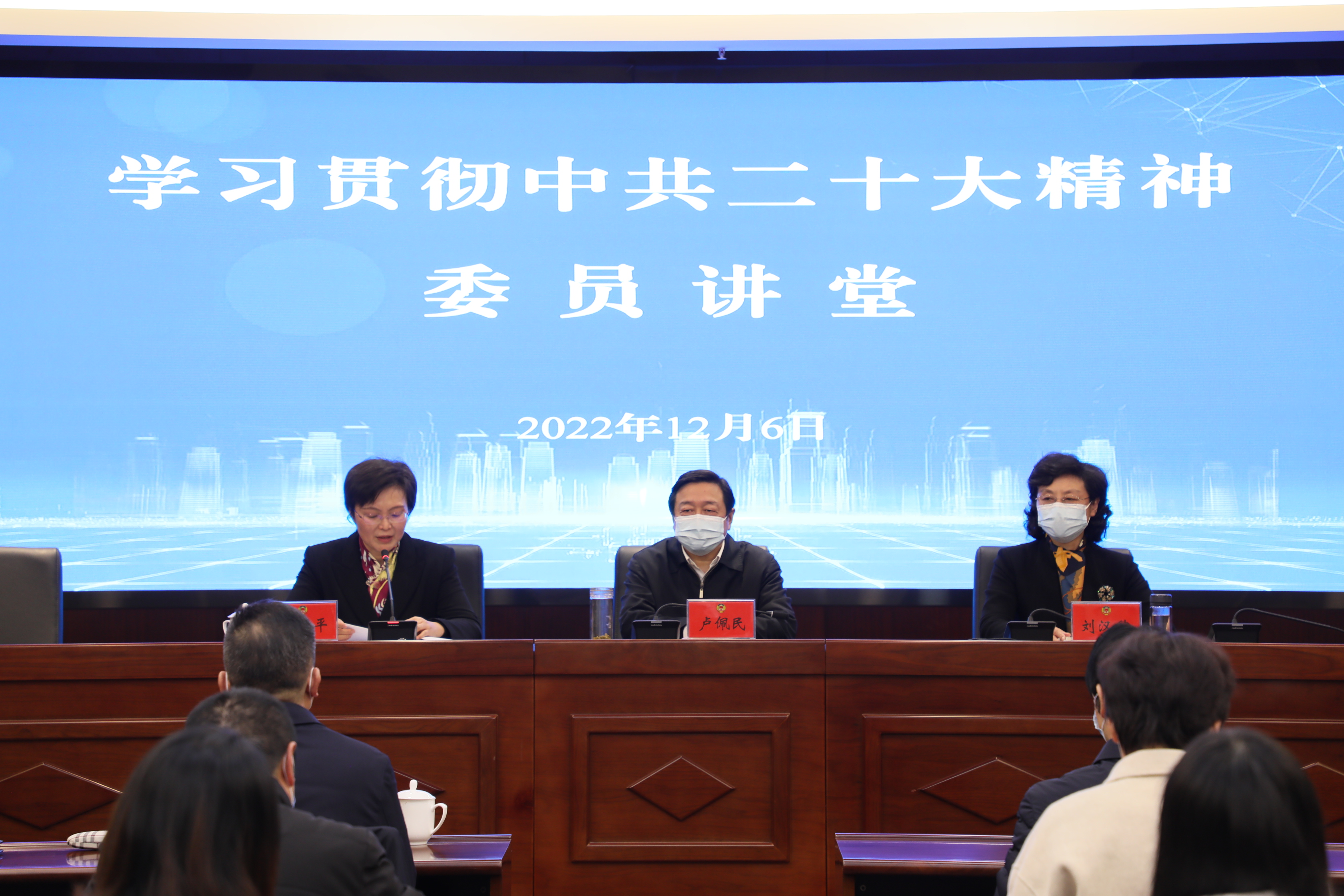 为深入学习宣传贯彻党的二十大精神,按照泰州市委统一部署,12月6日下午,泰州市政协开展“深入界别大宣讲”暨委员讲堂活动。市委宣讲团成员、市政协党组书记、主席卢佩民作宣讲报告。市政协副主席刘汉秋,市政协党组成员、秘书长刘秋平以及经济界别、工商联界别、民盟界别委员参加活动。