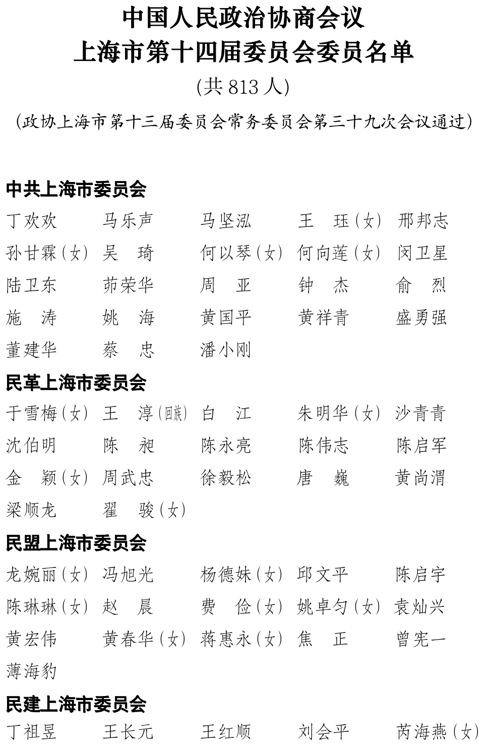 (原题为《政协上海市第十四届委员会委员名单产生,共813名!》)