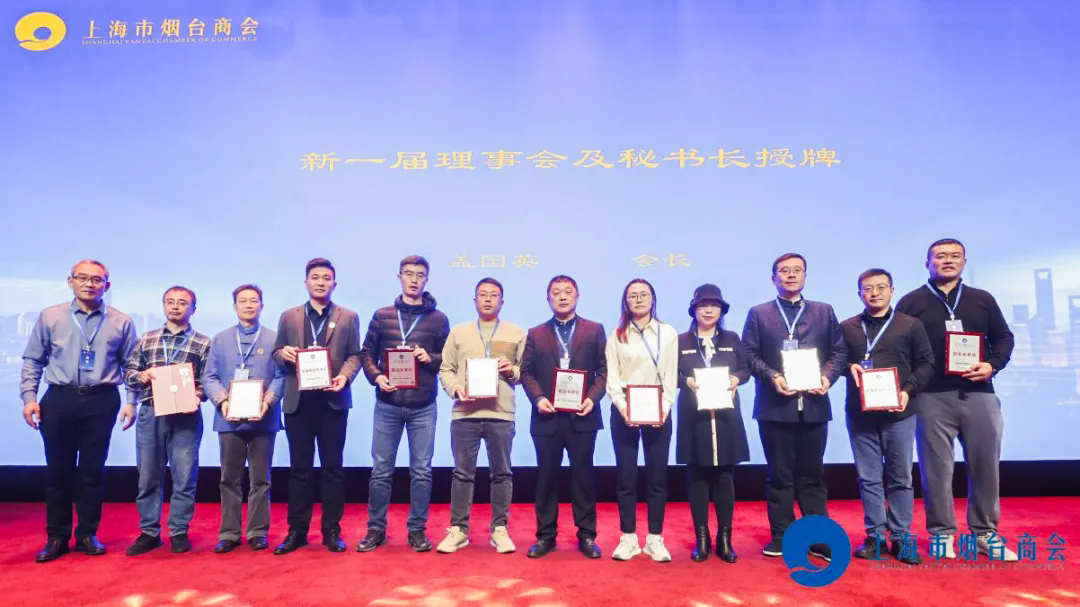 会上,上海市政府合作交流办公室联络处处长刘强为会长盖国英授牌,烟台市委统战部副部长、市工商联党组书记胡卫宁为创始会长陈河江授牌。盖国英为新一届理事会及秘书长授牌。上海市烟台商会成立四年来,始终以“无私奉献、共同学习、回报家乡”为愿景,坚持“公正无私、资源共享、互帮互助、共进共赢”价值理念,积极服务广大会员企业,热忱回馈家乡回报社会,促进沪烟两地的经济社会文化交流和协同发展,商会的凝聚力、影响力持续提升,被认定为2023-2024年度上海市“四好”商会。