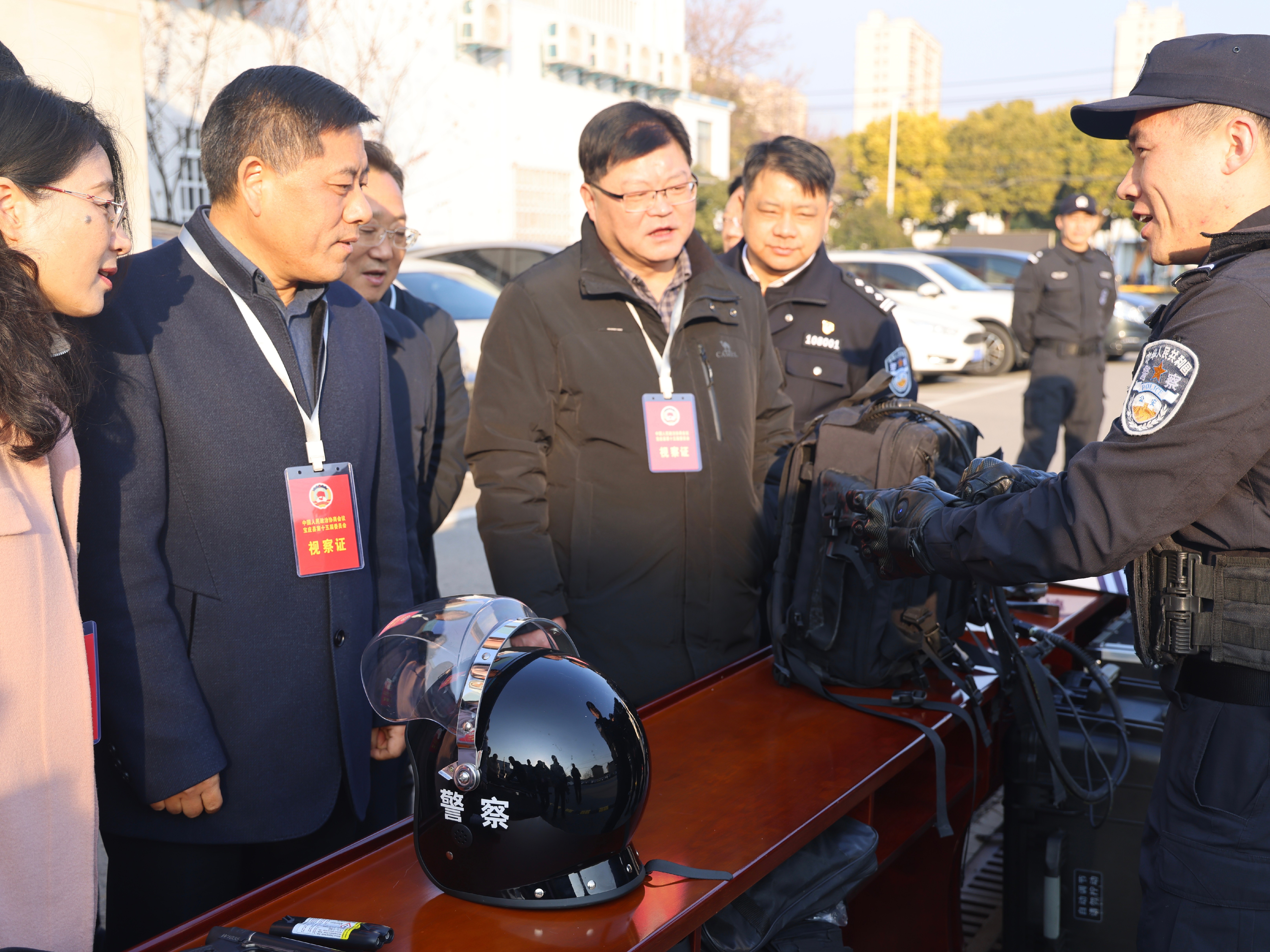 视察组一行先后赴县反邪教宣教馆、安宜实验学校“润苗驿站”、巡特警大队、大数据实战赋能中心视察调研,详细听取公安反邪教工作、未成年人保护和犯罪预防、应急处突机制、数据赋能实战等情况介绍,观摩个人极端事件处置演练、公安铁骑战术表演和警用装备展示,并观看公安工作汇报专题片。