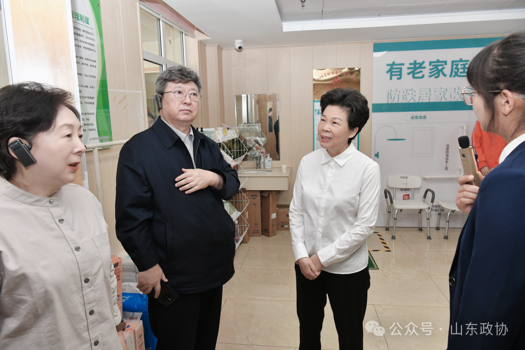 考察团走进历下区和历城区养老服务中心,听取关于中心建设运营、功能发挥、主要特色的介绍,并就普惠养老、医养结合、居家养老智慧服务、养老人才培养等进行深入交流。来到历下区甸柳街道综合养老服务中心和东关街道泺河社区综合照料中心,实地察看24小时照护床位、养老助老生活服务站、多功能活动餐厅、康复运动理疗中心等,询问失能失智老人照护、定制适老化改造、“银发集市”项目建设、长期护理保险推广等方面情况。在泰康之家·儒园社区长者照护之家,考察团听取项目区位优势、建设规划、管理理念等相关情况介绍,走进老年活力中心察看餐厅、便利店、棋牌室、综合训练馆、恒温泳池等配套设施,详细了解项目运行成效。