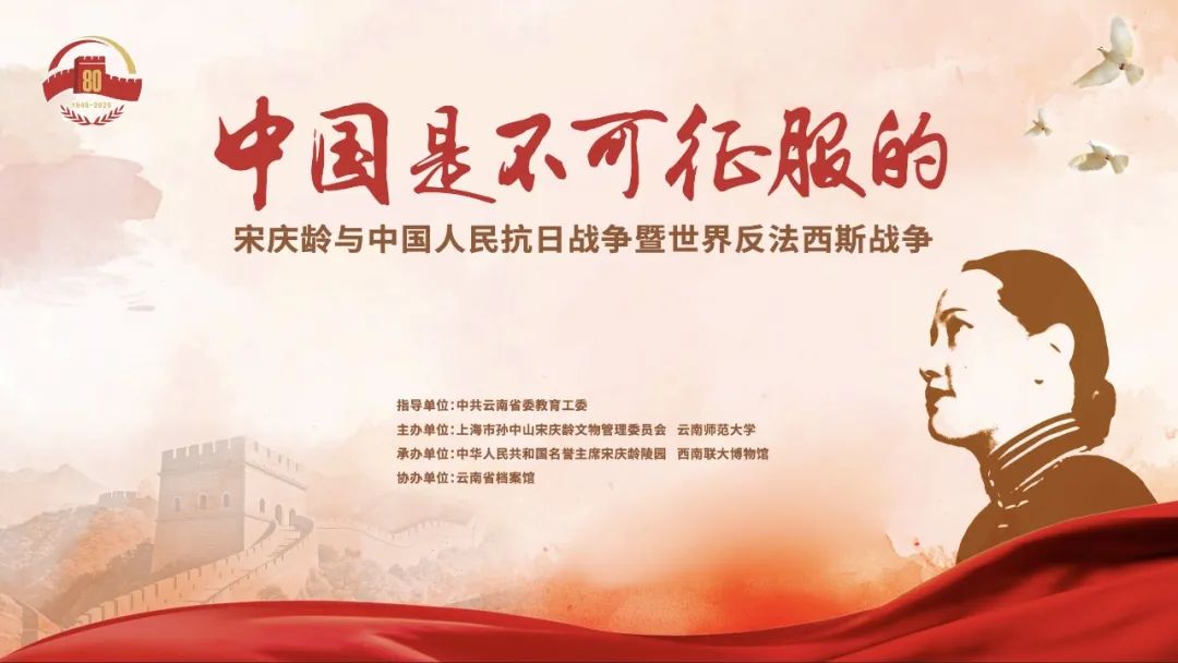 为纪念中国人民抗日战争暨世界反法西斯战争胜利80周年,缅怀宋庆龄同志为中华民族的独立、自由和解放事业建立的不朽功勋,由中共云南省委教育工委指导,上海市孙中山宋庆龄文物管理委员会、云南师范大学主办,中华人民共和国名誉主席宋庆龄陵园管理处、西南联大博物馆承办,云南省档案馆协办的“中国是不可征服的——宋庆龄与中国人民抗日战争暨世界反法西斯战争图片展”于8月28日在云南师范大学开幕。上海市孙中山宋庆龄文物管理委员会副主任吴剑、云南师范大学党委书记张祖武、云南省档案馆馆长夏红致辞,云南师范大学校党委副书记和雪莲主持开幕式。来自云南省有关部门和单位代表,以及专家学者、新闻媒体记者和云南师范大学师生等200余人参加了开幕式。