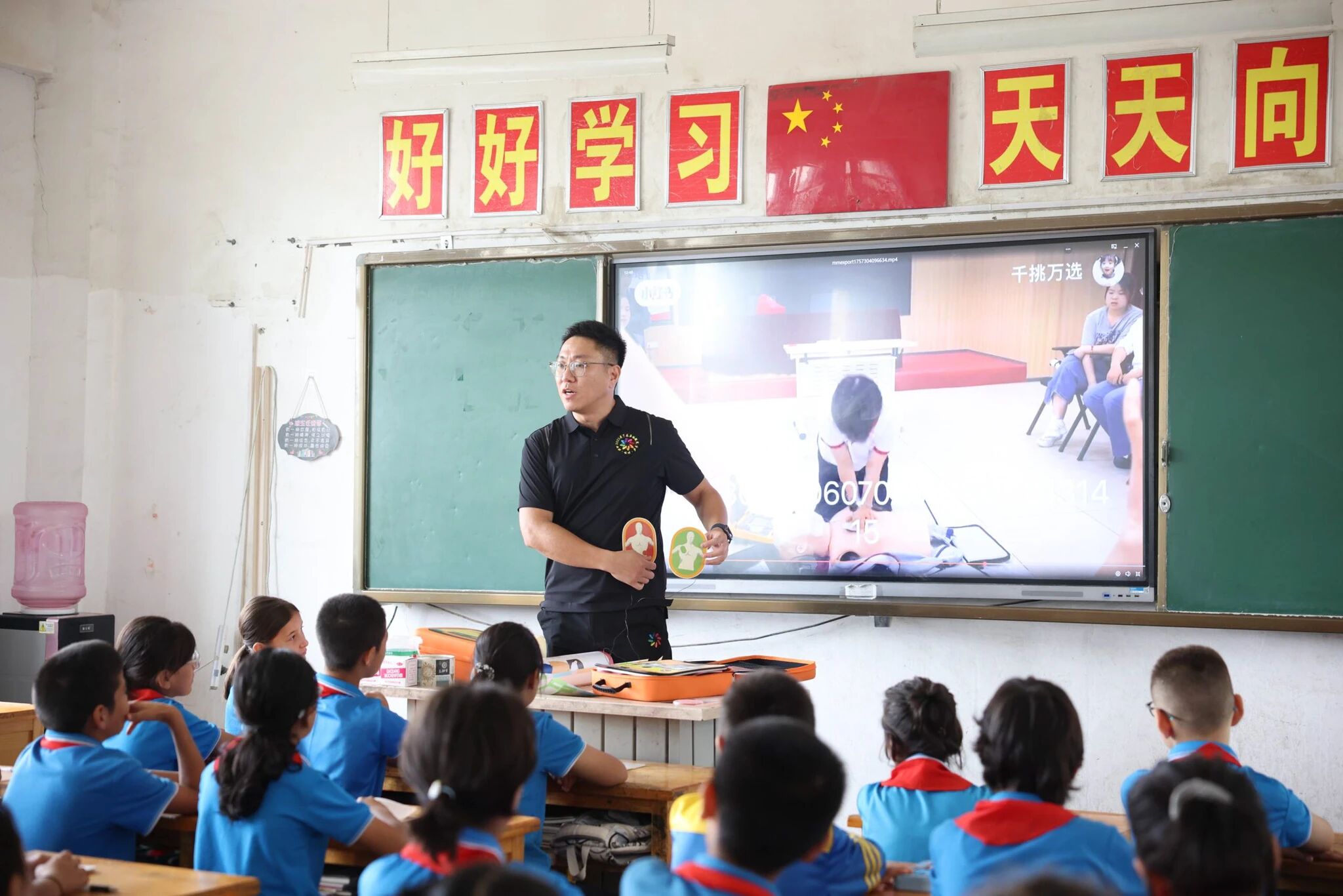 “如果看到有人晕倒,第一步要做什么?”孙迪举起AED模型,开启“急救实操课”。从心肺复苏基础知识讲起,用动画短片演示流程,再让孩子们分组在模拟器上练习操作。为了给孩子们带来专业且易懂的急救课,孙迪特地学习了针对儿童的专业急救课程,反复琢磨如何让知识点、操作手法贴近孩子的认知水平。“目前在莎车,AED设备可能还不够普及,我们希望通过这节课,让孩子们树立急救意识。同时,我们发现老师们学得也很投入,这有利于这个技能在校园进一步推广传播。”
