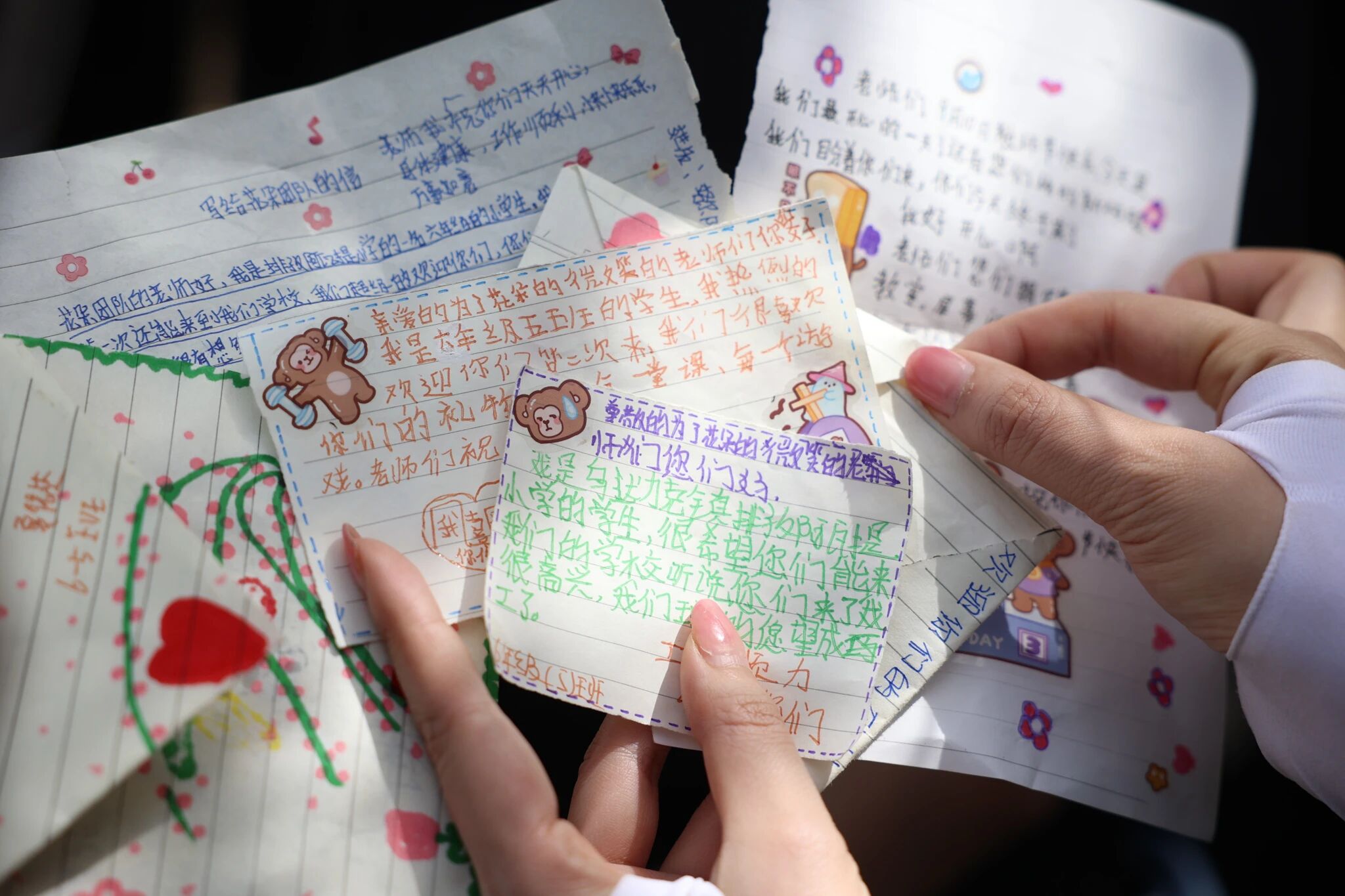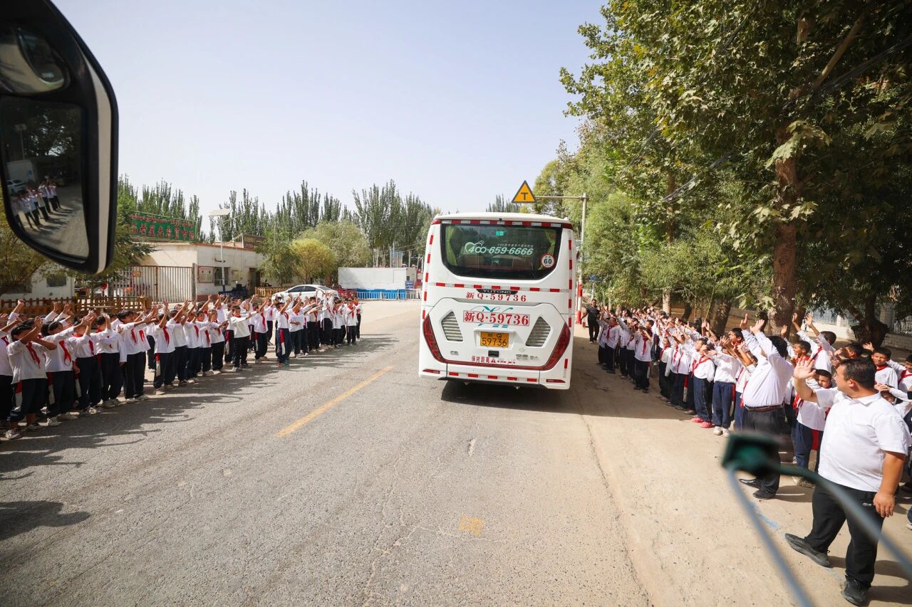 9月12日清晨,天还没有亮,伊什库力乡实验小学的校门口,孩子们穿上崭新的衣服,挥着小手送别援教队员,有的孩子把信悄悄塞到队员手里。