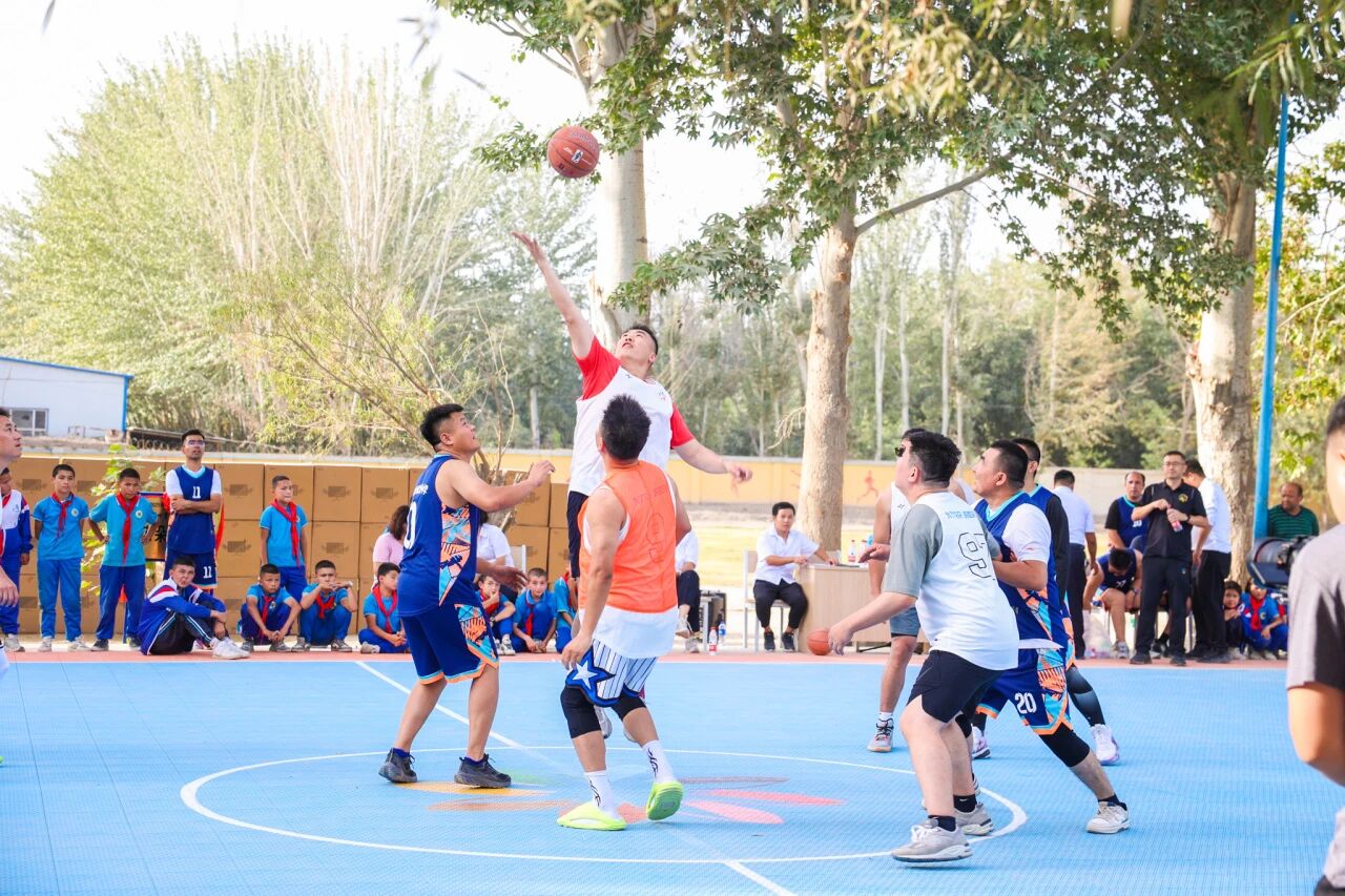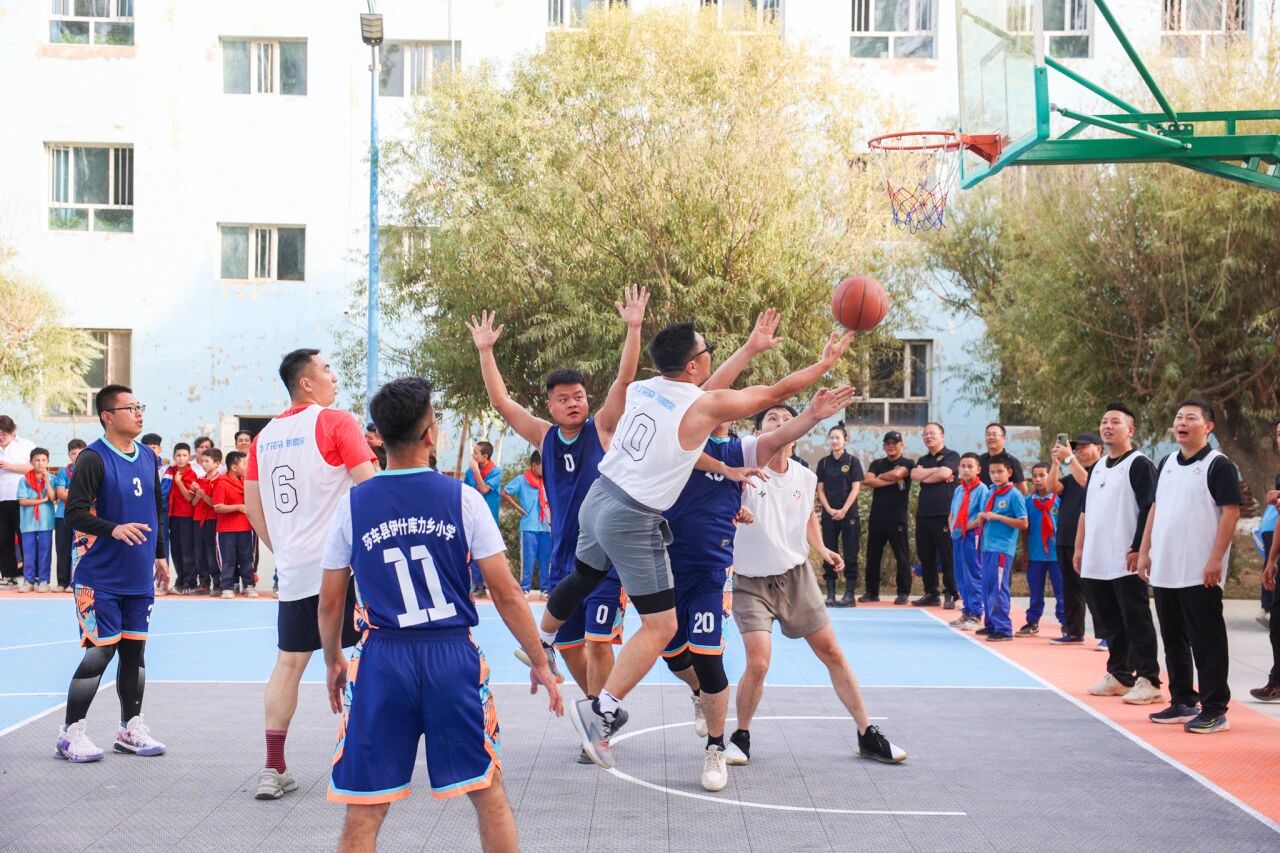 傍晚,《花开边疆美》篮球友谊赛在伊什库力乡实验小学开赛,援教队员与学校老师各成一队,哨声刚响,队员们就忙着抢球、传球,赛场边的孩子们扯着嗓子喊“花朵老师加油”。最终,花朵团队以5分之差险胜,比赛结束时,孩子们涌到赛场边,围着队员们欢呼。夕阳下,满场的笑声比比分更让人难忘。