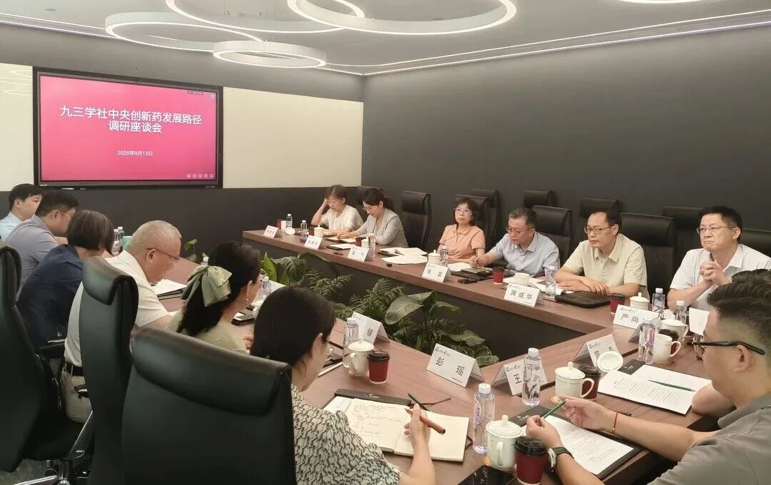 9月12日,九三学社中央医药卫生专门委员会副主任、办公厅主任吴彬来沪就创新药发展路径开展调研,社市委秘书长张磊陪同调研并主持召开座谈会。