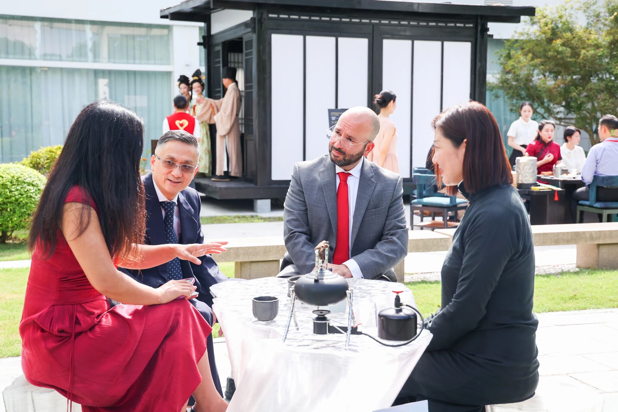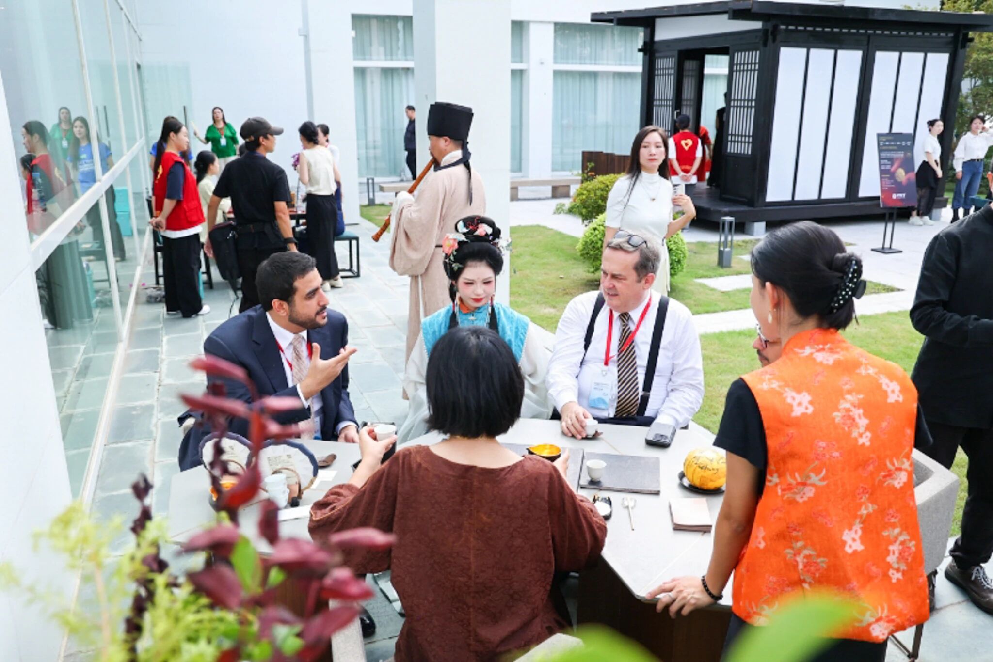 会前,中外嘉宾们还参观了文化消费体验工坊,体验AI人形机器人、观摩书法艺术、品鉴茶文化,沉浸式感受中国文化魅力,感知文化消费与国际产业融合的多元可能。
