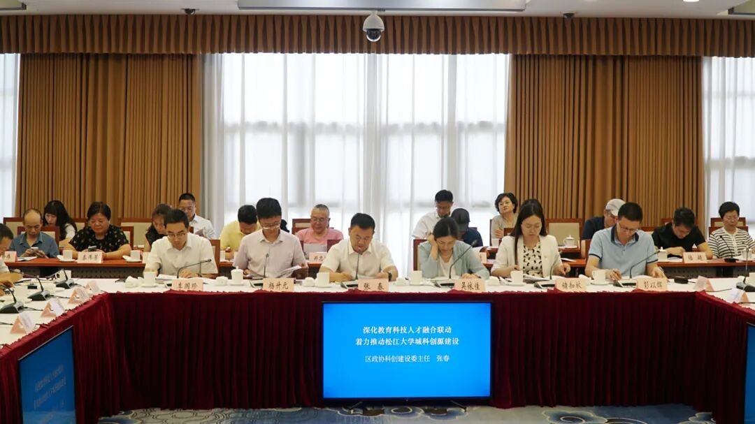 区政协科创委主任张春作主旨发言,吴依佳、孙志宏、杨升元、储知秋、李国珍、彭以辉、陆超等政协常委、委员从深化大学城跨校协同创新、区校融合发展、科技金融助力、产学研协同创新、科技成果转化、资源要素供给等方面积极建言献策。