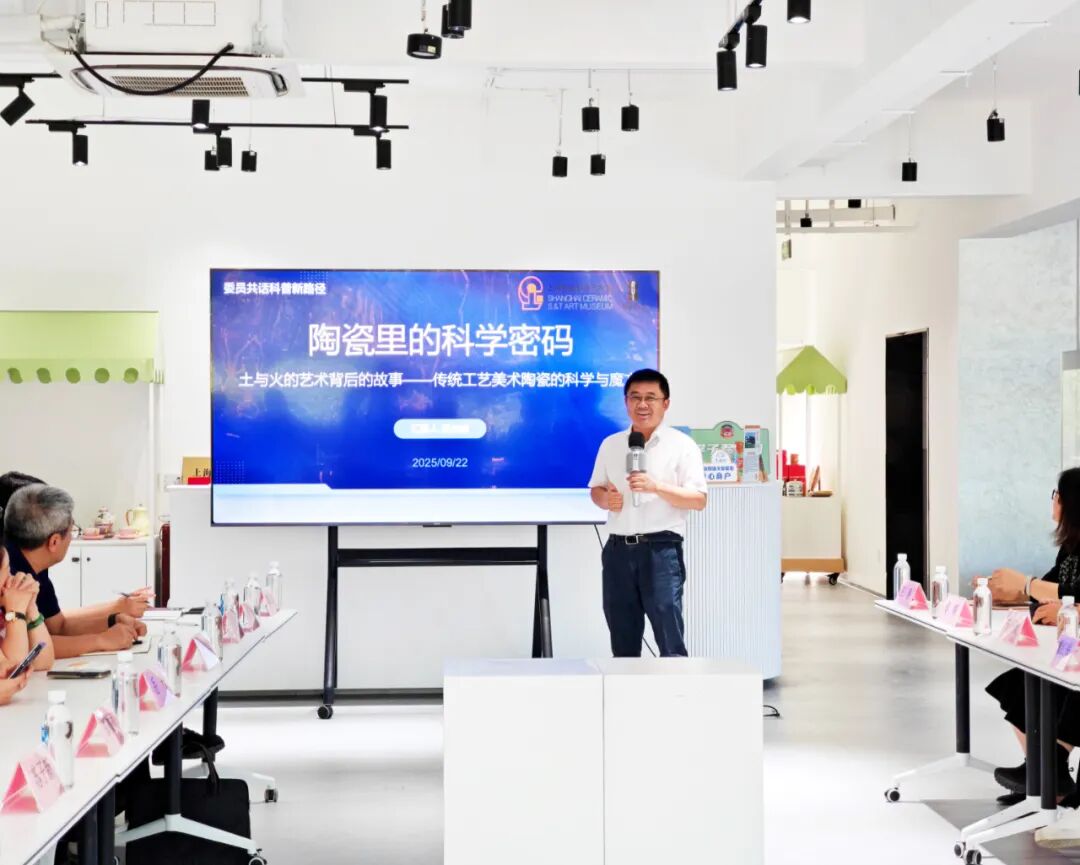 作为中华民族文明的重要象征,陶瓷既是“土与火的艺术”,也是材料科学的鲜活载体。在“溯源·解瓷”环节,区政协常委、上海陶瓷科技艺术馆馆长蔡念睿,以《土与火的艺术背后的故事——传统工艺美术陶瓷的科学与魔方》为题,从历史视角拆解传统陶瓷工艺里的材料学、热力学原理,结合陶器与瓷器的原料构成、烧制温度差异等细节解析,让现场委员感受陶瓷艺术蕴藏的科技力量和美学力量。
