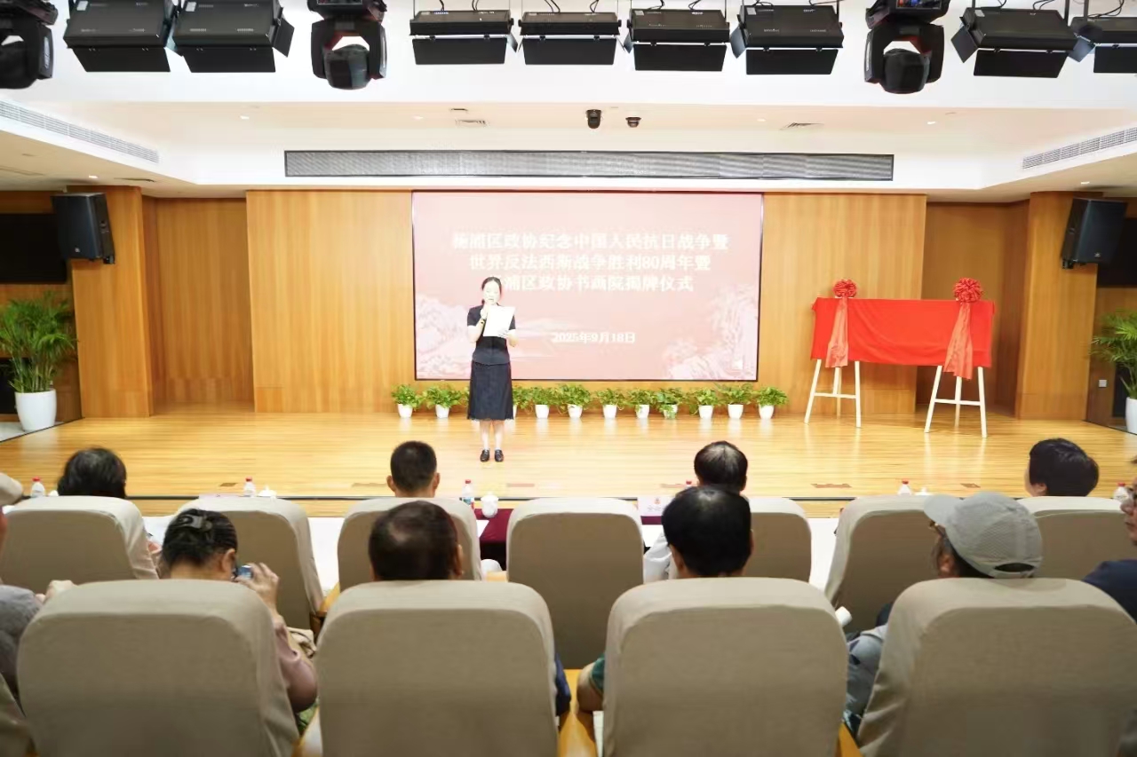为纪念中国人民抗日战争暨世界反法西斯战争胜利80周年,9月18日上午,杨浦区政协在政协委员爱国主义研学基地(国歌展示馆)举行主题书画活动暨区政协书画院揭牌仪式。市政协副主席、书画院院长金兴明,区政协主席邰荀、副主席顾登妹、秘书长徐进出席。区政协书画院首届成员、区政协各专委会主任、部分区政协委员参加。区政协委员、上海交通大学附属中学副校长黎冀湘主持活动。