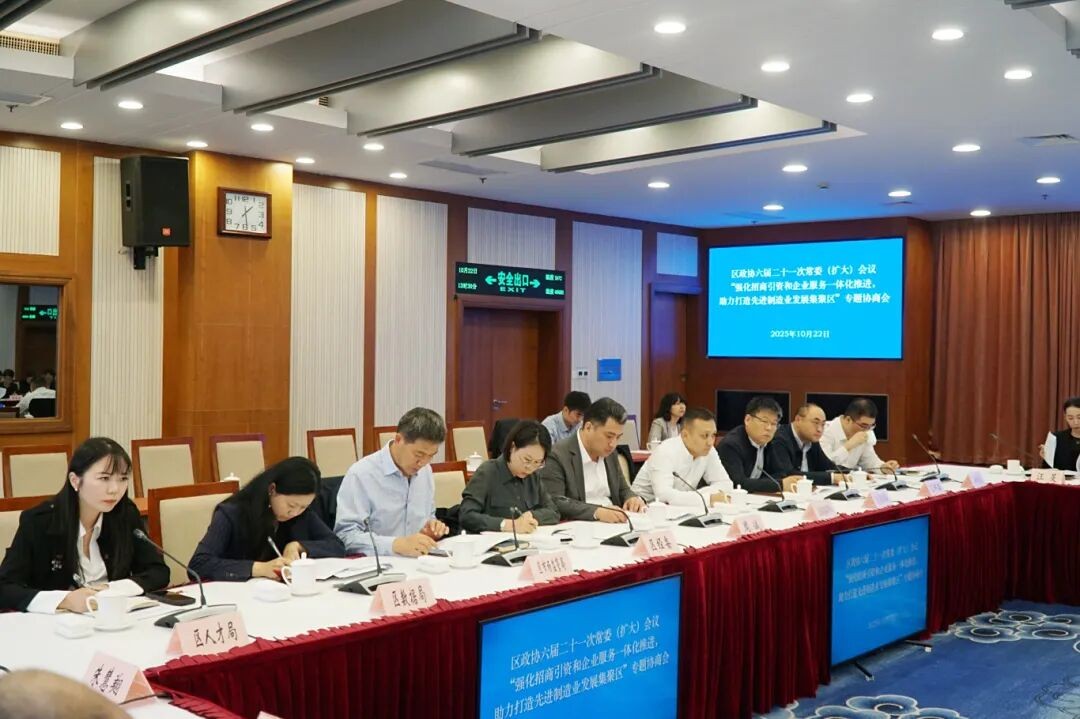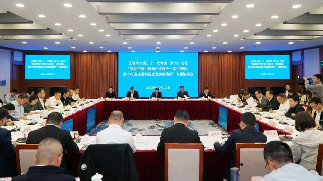 10月22日下午,区政协召开六届二十一次常委(扩大)会议,围绕“强化招商引资和企业服务一体化推进,助力打造先进制造业发展集聚区”开展专题协商议政。区政协主席刘其龙主持会议,区委常委、副区长周诚应邀出席。区政协副主席李正、赵宏卫、金冬云、陶明,秘书长孙剑,专委办主任朱雷娟及各专委会主任出席会议。区投促和企业服务中心主要领导,区人才局、发改委、经委、科委、市场监管局、科创发展办、数据局等分管领导应邀参加。部分委员代表、调研课题组成员列席会议。