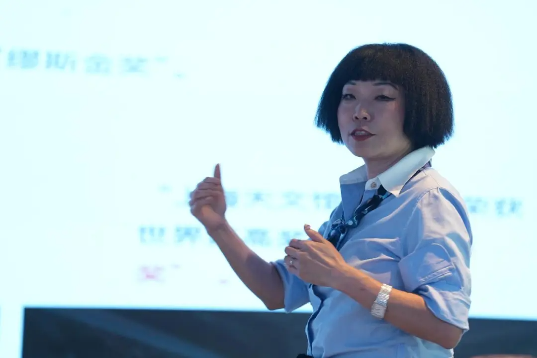 艺术家、上海戏剧学院教授、博士生导师杨青青以“转媒体艺术设计——人工智能视域下的传统文化当代创新”为题,系统阐述“转媒体”思维在文化传承与科技融合中的方法论价值。她指出,转媒体实践的核心在于“转化”,关键路径在于先“转”后“合”,即推动媒介跨越边界,转化为多元表达形式。她以上海天文馆、中国大运河博物馆等项目为例,展示如何将哲学与历史叙事转化为沉浸式体验。在戏曲领域,她通过VR戏曲、动态服装等创新形式,实现“守正创新”。杨青青强调从研究到实践的闭环,通过系统整理戏曲纹样、建立“色彩字典”,推动文化数据化与再创造。面对AI浪潮,她提出转媒体作为“可复制的方法论”,指导学生开展“去媒体化”互动设计,探索人机共生可能性。她指出,艺术的深层魅力在于“觉”的自由转换——人作为独特“转换器”,能将实觉转化为虚觉,这正是文化与科技结合的无限可能。
