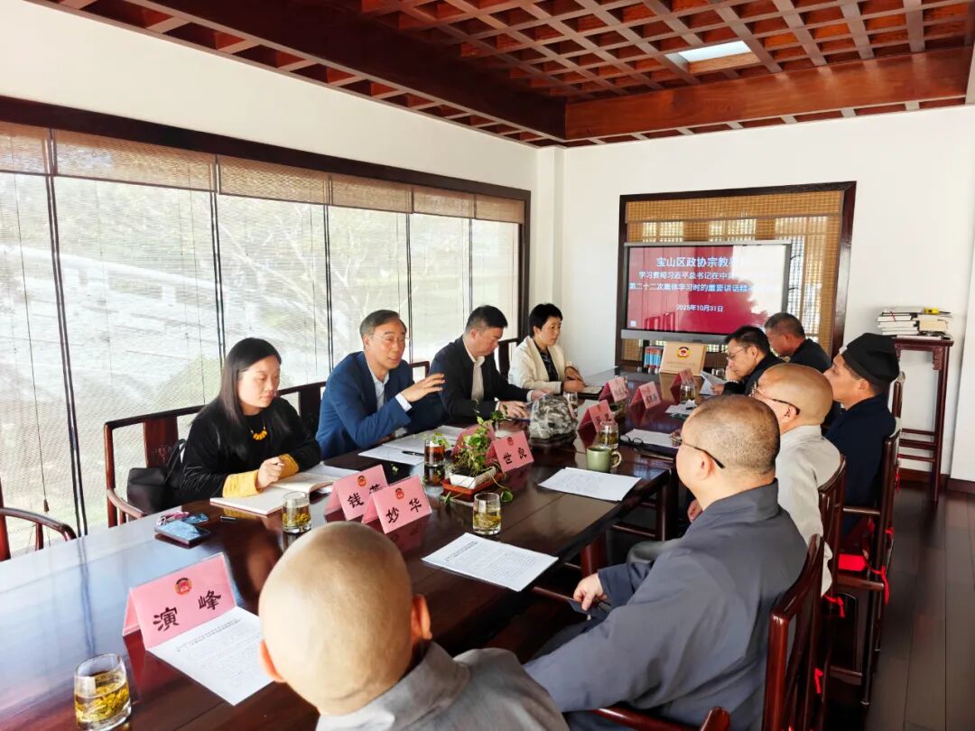 10月31日上午,区政协宗教界别委员工作室组织界别委员和群众,专题学习贯彻习近平总书记在中共中央政治局第二十二次集体学习时的重要讲话精神。区政协主席凌惠康出席,区政协秘书长、办公室主任严春敏,区政协副秘书长、办公室副主任钱芳参加。
