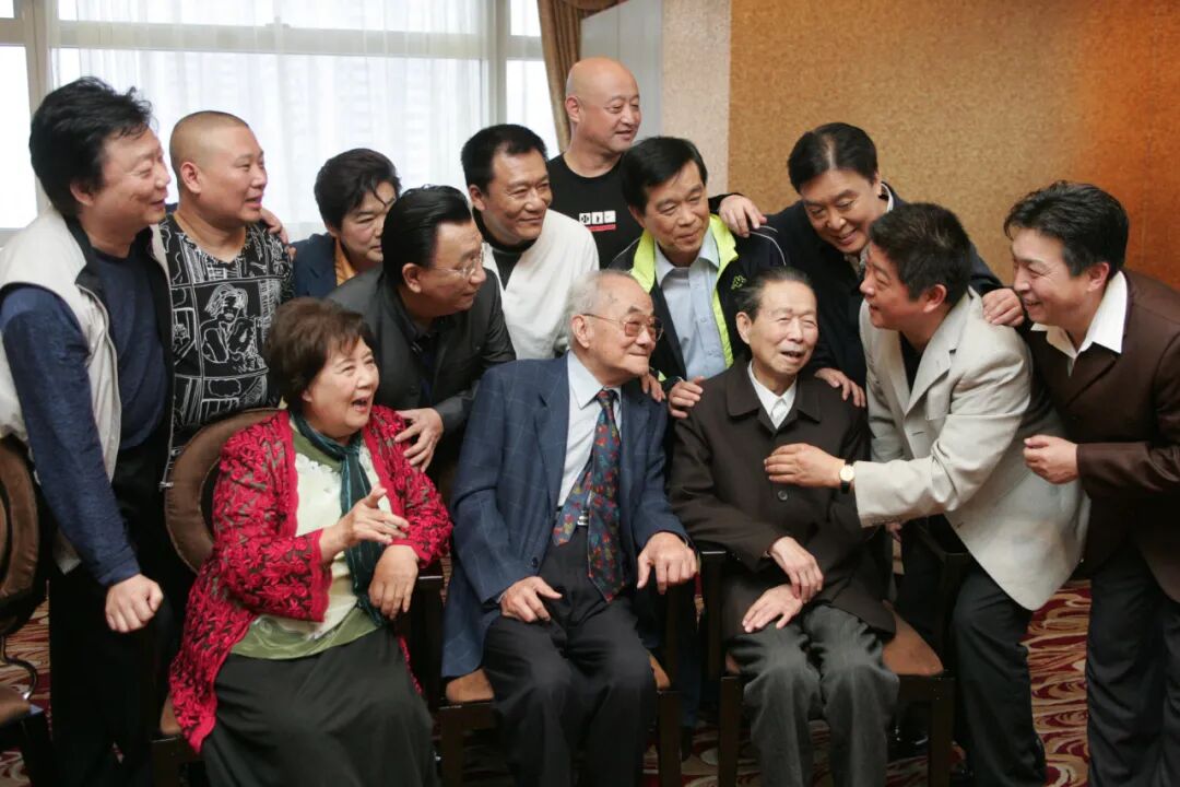 侯耀文带领相声群英拜访上海滑稽界泰斗,前排左一为嫩娘
