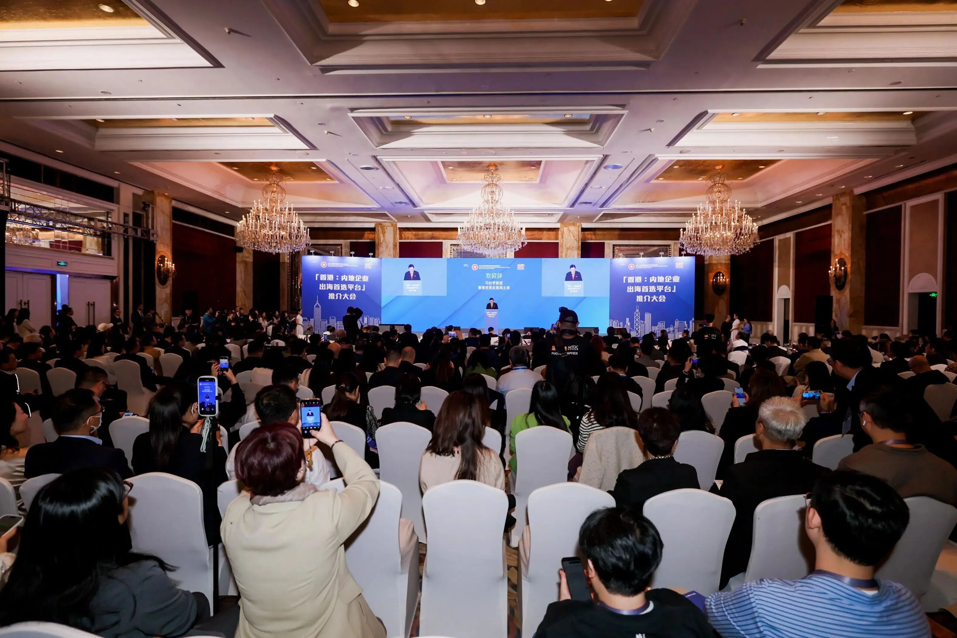 由香港特区政府和香港贸易发展局合办的“香港:内地企业出海首选平台”推介大会11月6日在上海举行。这是香港特区政府“内地企业出海专班”首次在中国内地举办大型宣传活动。此次推介大会以“香港通道 沪港携手 迈向全球”为主题,汇聚多位重量级演讲嘉宾分享香港在各领域的优势,鼓励更多内地企业以香港为平台开拓海外市场,吸引500人参与。香港特别行政区行政长官李家超,中央港澳工作办公室、国务院港澳事务办公室分管日常工作的副主任徐启方,上海市委常委、常务副市长吴伟出席活动并致辞,市工商联(总商会)副主席(副会长)汪剑明出席活动。