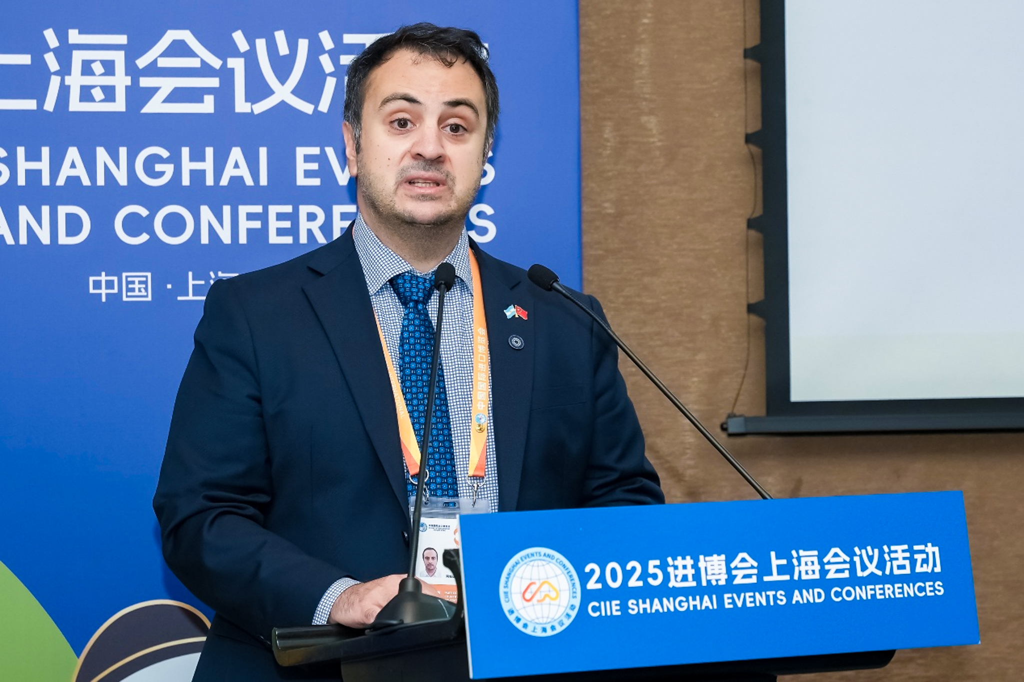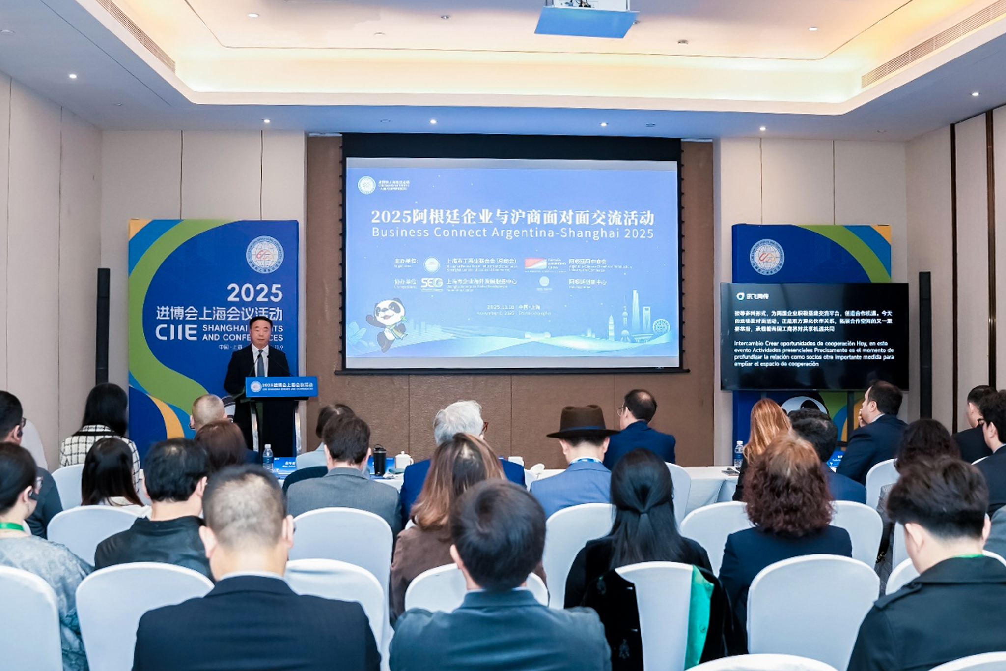11月8日上午,“2025阿根廷企业与沪商面对面”交流活动在上海虹桥绿地铂瑞酒店举行。本次活动由上海市工商联(总商会)、阿根廷阿中商会联合主办,由上海市企业海外发展服务中心、阿根廷创新中心协办。作为“进博会上海会议活动”的系列活动之一,该活动旨在发挥进博会溢出效应,为上海与阿根廷企业搭建高效、务实的经贸合作对接平台。上海市工商联(总商会)常务副主席(副会长)王霄汉,阿根廷驻上海总领事唐路恩,阿根廷阿中商会执行董事孔爱莉出席活动并致辞。上海市工商联(总商会)副主席(副会长)杨茜主持活动。两地商协会及企业代表80余人参加交流。