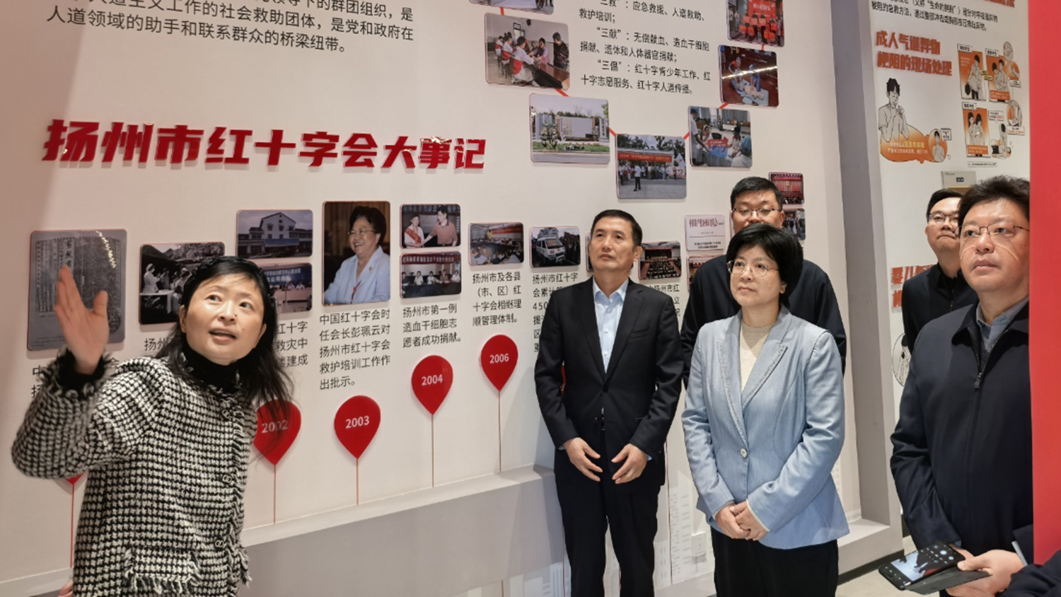 李建芳对市红十字工作取得的成绩给予充分肯定。她强调,要对标先进,紧扣“三救三献”工作主业,突出扬州特色,积极拓展新的服务载体,提升专业化、多样化服务水平,做优精品服务项目,擦亮扬州市红十字“金名片”。要大力推进信息化建设,开展红十字精神宣传,有效赋能红十字会工作信息公开,助力服务更加精准、管理更加规范、机构更加透明,实现红十字工作全要素、全业务、全流程集中展示和高效更新,不断提升社会公信力。要进一步完善联动机制,强化与各部门协同,推动信息资源互联互通共享,实现信息资源跨部门联动。充分调动会员、志愿者和各类专业团队力量,汇聚推动红十字事业高质量发展的合力。