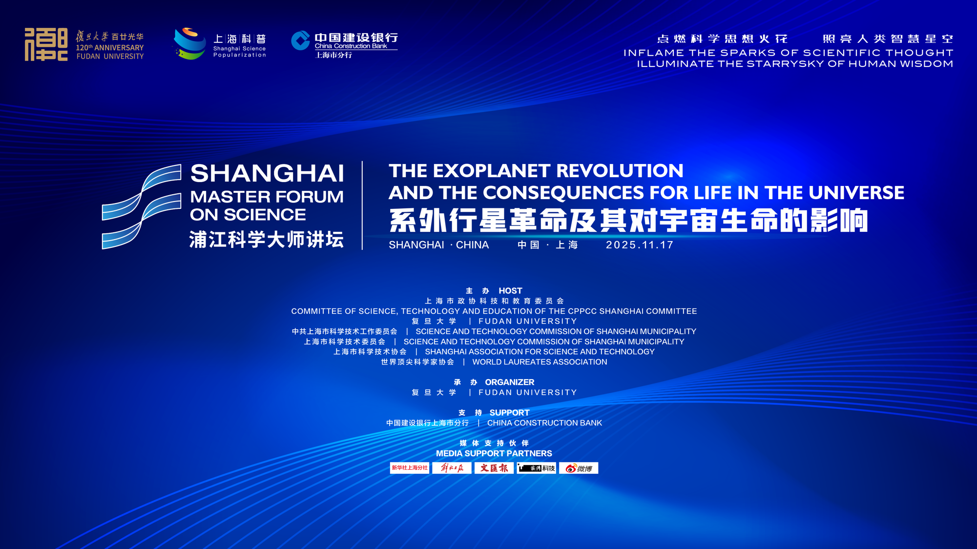 点燃科学思想火花,照亮人类智慧星空。让顶尖科学家的思想,从上海向全球传播,向全球呈现科学之美、科学之光、科学之慧。“浦江科学大师讲坛”由上海市政协发起并主管,上海市政协科技和教育委员会、复旦大学、中共上海市科学技术工作委员会、上海市科学技术委员会、上海市科学技术协会、世界顶尖科学家协会共同主办,旨在打造全球顶尖科学家竞相展示科学思想的大平台、引领人类攀登科学高峰的大本营,让更多顶尖科学家的思想留在上海、汇聚在上海,成为上海强化创新策源功能、推进科创中心建设的重要平台。浦江科学大师讲坛第十三期将于2025年11月17日上午9:30在复旦大学(邯郸路220号)相辉堂北堂举办。