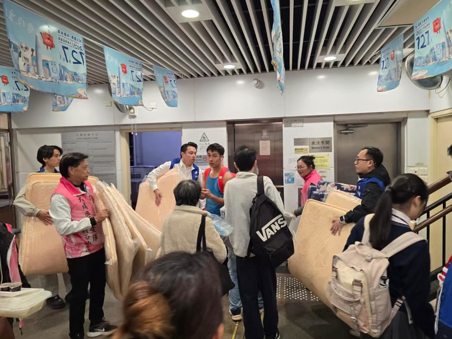 宏福苑居屋建于1983年,有8座32层高楼,住有2000户近5000人。大火瞬间让数千居民无家可归。来不及伤痛,从26日傍晚开始,大家忙碌起来,组织关爱队开设救护站、设立9个临时庇护中心,从零开始,床垫、枕头、铺盖、水、食物都要迅速准备。