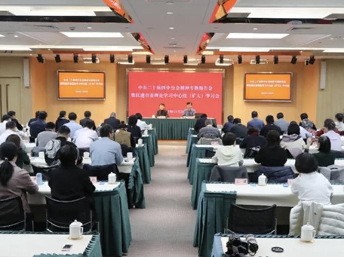 11月24日下午,民建市委召开理论学习中心组(扩大)学习会,专题学习中共二十届四中全会精神。民建上海市委主委解冬主持会议。民建市委副主委钱雨晴、杨成长、黄冬梅、薛飒飒、其实、胡开颜,秘书长徐红出席会议。