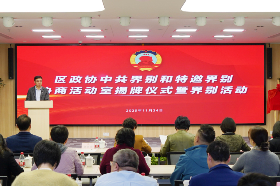 2025年11月24日下午,区政协中共界别和特邀界别协商活动室揭牌仪式在五角场街道党群服务中心举行。区政协副主席顾登妹、明依,秘书长徐进出席。区政协中共界别召集人、区委组织部副部长赵佩俊主持揭牌仪式。