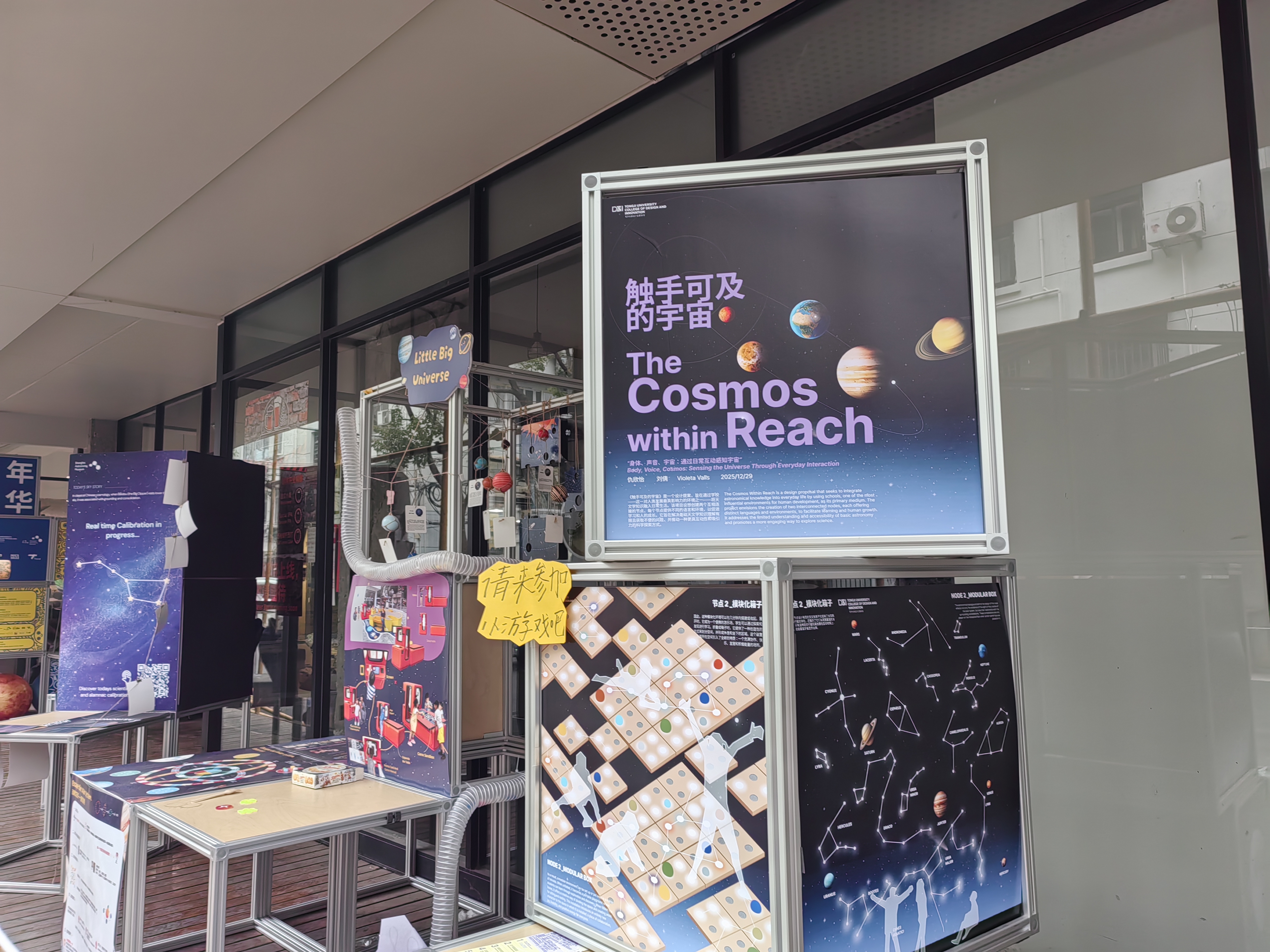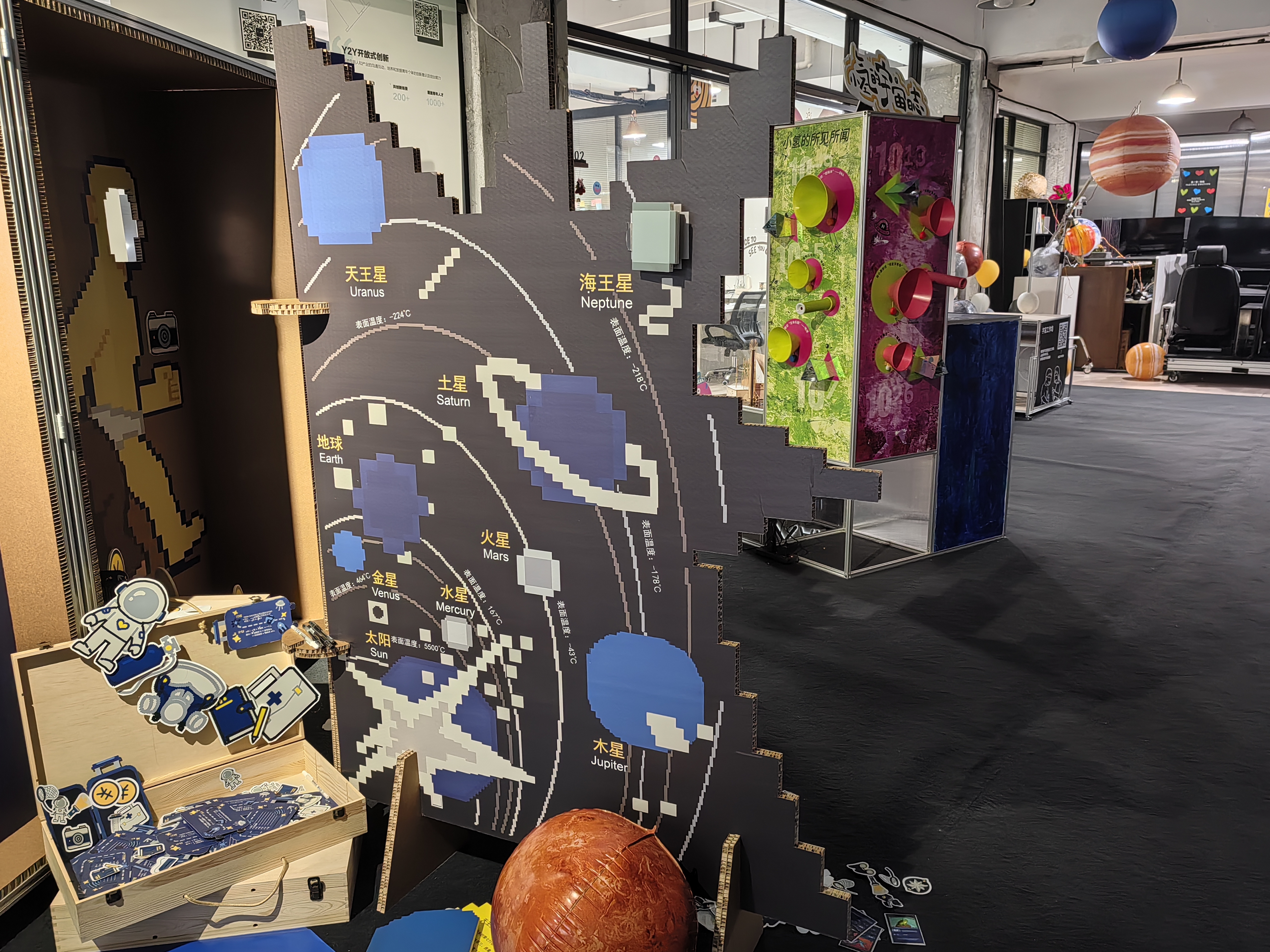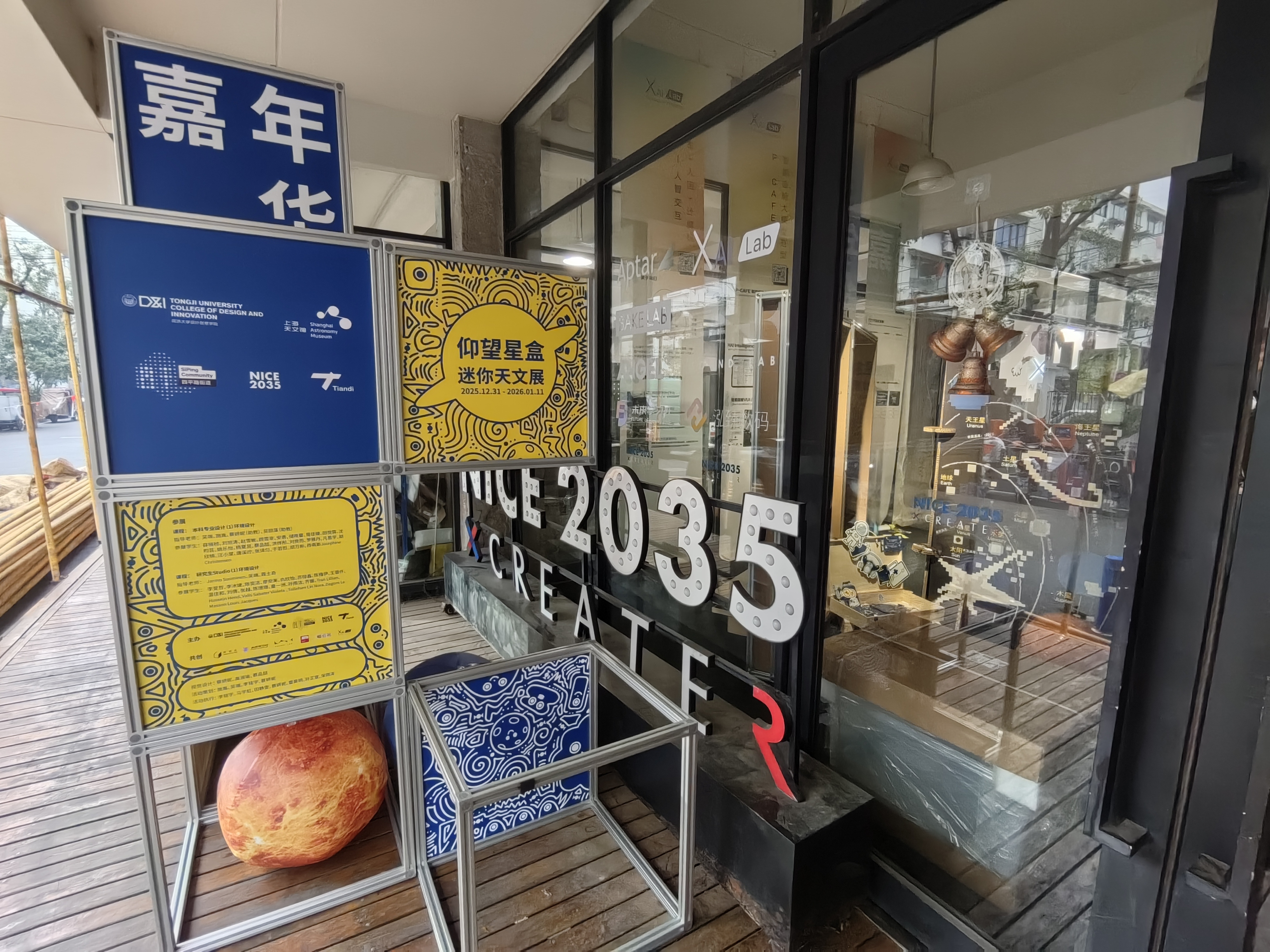 13组充满巧思的设计作品,将浩瀚宇宙“装”进了熟悉的街角,让科学可触摸、设计可参与、创新与居民生活同频共振。日前,一个名为“仰望星盒”的迷你天文展正在四平路街道NICE2035未来生活原型街举办。