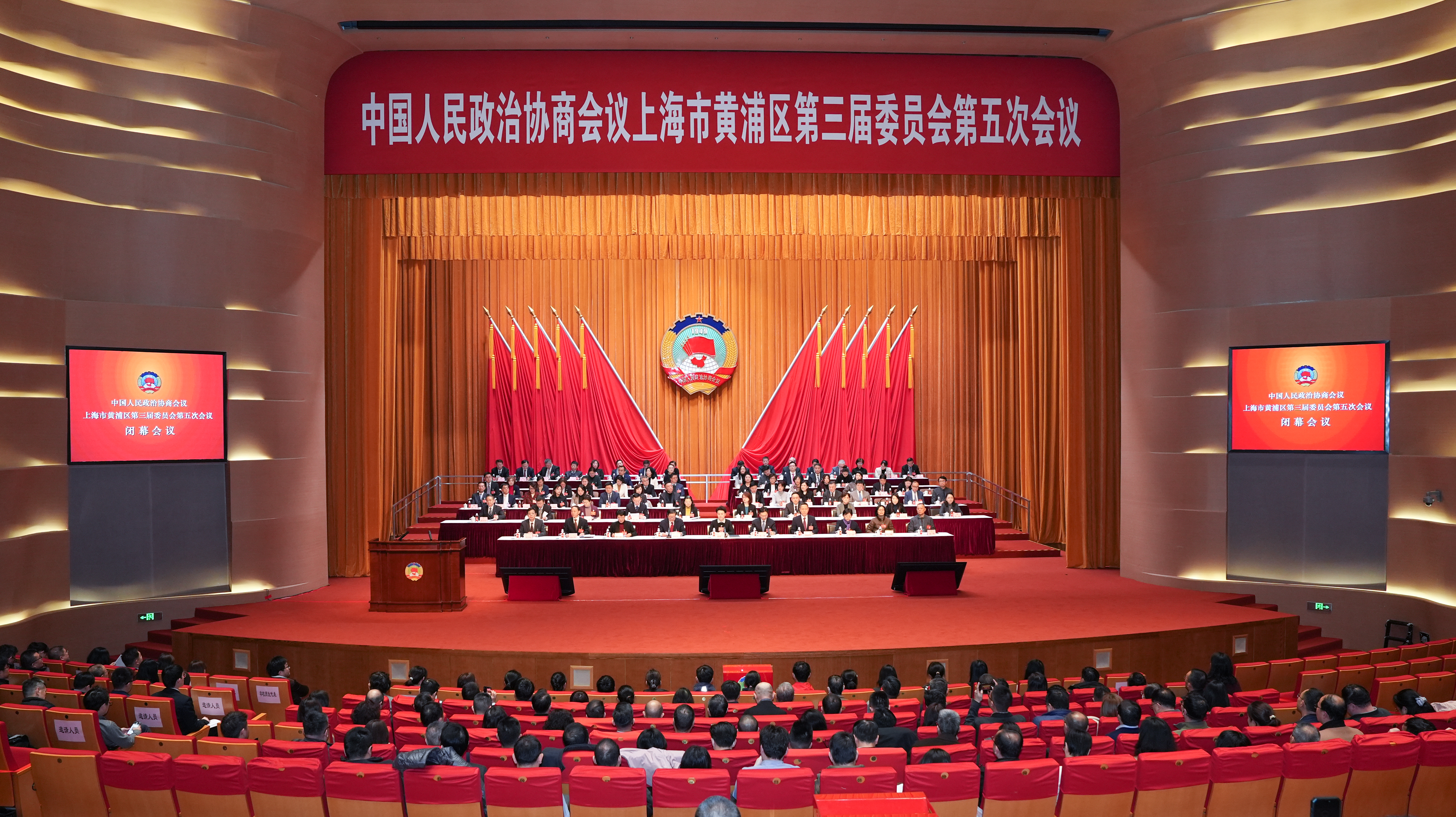 1月29日下午,在圆满完成所有议程后,中国人民政治协商会议上海市黄浦区第三届委员会第五次会议在黄浦文化中心胜利闭幕。区领导徐惠丽、杨朝、陈志奇、徐建华、陆静、袁园、张正明、马梅、胡开颜,以及区政协秘书长俞明出席闭幕会议并在主席台前排就座。杨朝作讲话,陈志奇主持会议。