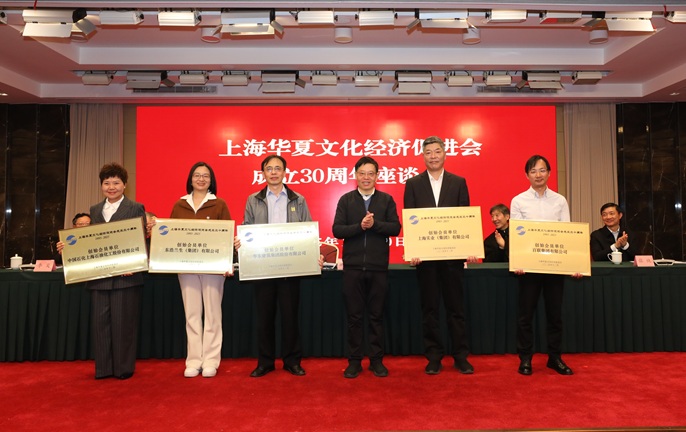 会员单位与华夏促进会之间承载着的深厚情谊,是华夏促进会发展的根本动力和坚实基石。座谈会上,金兴明向华夏促进会成立时的其中5家创始会员单位,上海石化、上实集团、华建集团、百联集团和东浩兰生集团授牌。这是会员单位对华夏促进会信赖的见证,更是荣誉传承的象征。