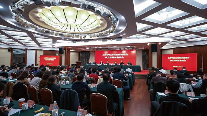 大会播放了《上海华夏30年》专题片,重温了华夏促进会30年发展之路。1995年12月9日,华夏促进会在市政协倡议并经市政协党组、主席会议同意后正式成立,汪道涵亲笔题写会名并担任名誉会长。30年来,华夏促进会在5任会长的带领下,始终围绕中心、服务大局,秉持“搭平台、促交流、聚共识、求实效”的办会理念,铺路架桥,穿针引线,解决企业难题,助力合作交流,特别是“海上名家讲坛”品牌成为了华夏促进会海派文化传播的新名片。