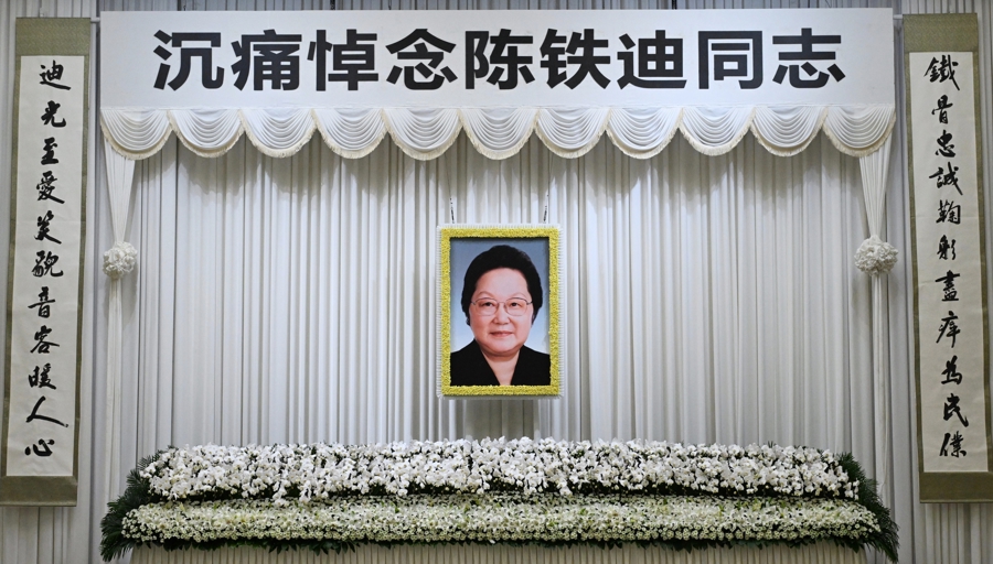 今天上午,龙华殡仪馆大厅内庄重肃穆、哀乐低回,陈铁迪同志的遗体覆盖着中国共产党党旗,安卧在鲜花丛中。9时许,陈吉宁、严隽琪、龚正、黄莉新、胡文容、朱忠明、吴伟、赵嘉鸣、陈通、张为、李政、陈杰等向陈铁迪同志遗体三鞠躬,作最后送别。市人大常委会、市政府、市政协负责同志和老同志,市有关部门和单位负责同志,陈铁迪同志亲属、同事、生前友好也前往送别。