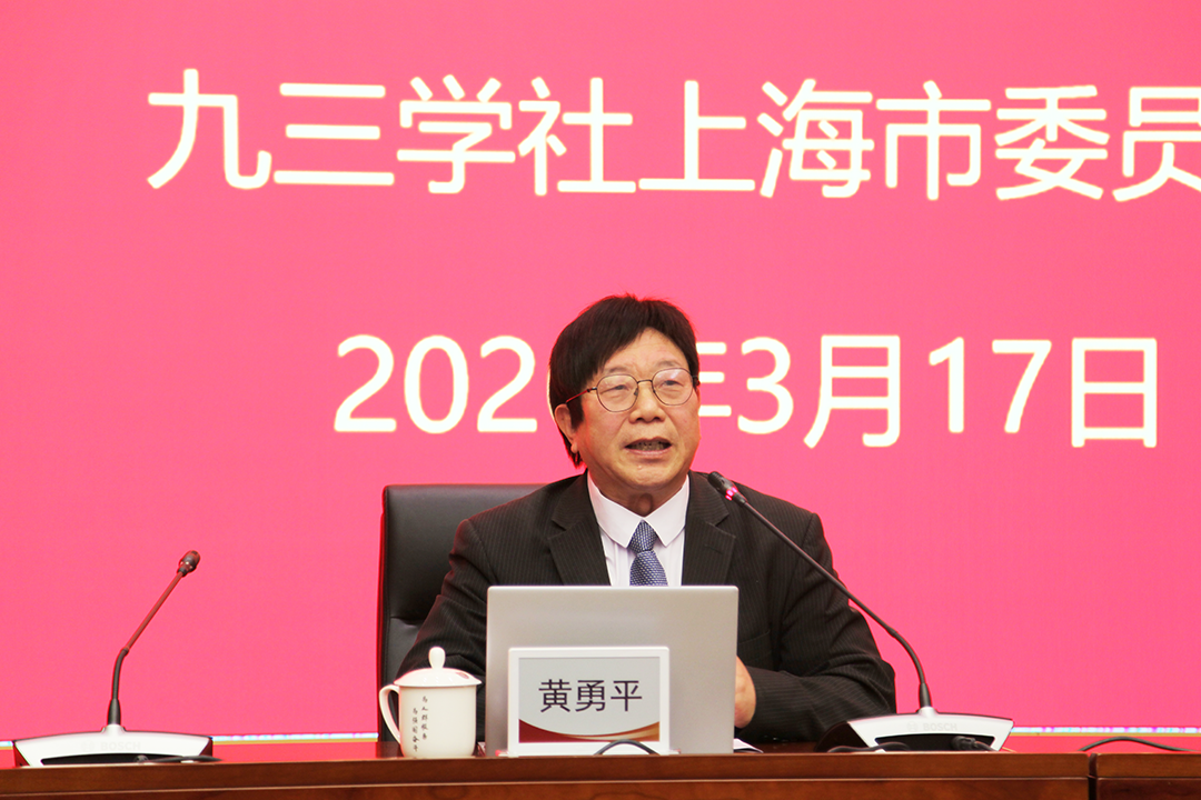 3月17日下午,九三学社上海市委举行全国两会精神传达暨理论学习中心组学习(扩大)会议。全国政协常委、上海市政协副主席、社市委主委钱锋出席会议并讲话。全国人大代表、社市委科技专门委员会主任黄勇平,全国政协委员、社中央妇女工作委员会副主任、社市委副主委张娣芳分别传达了十四届全国人大四次会议和全国政协十四届四次会议精神。社市委副主委苏良碧、詹咏、杨守业、邵驰,秘书长张磊出席,会议由詹咏主持。