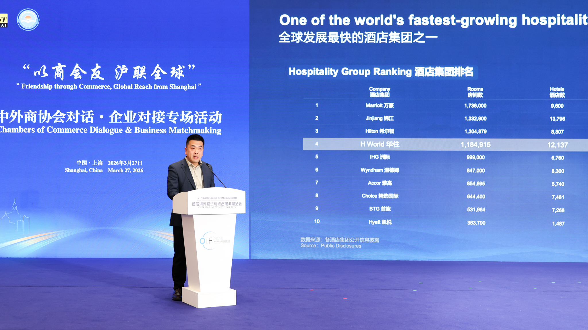 华住集团副总裁张晓虎以“聚力协同,品牌出海”为主题,介绍中国消费品牌全球化发展的实战经验,为中外企业双向投资合作提供参考。上海市外国投资促进中心主任薛锋主持圆桌分享环节,分设两大主题专场。