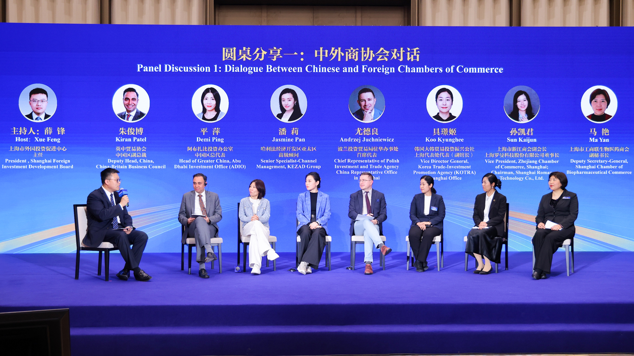 中外商协会对话专场,英中贸易协会、阿布扎比投资办公室、哈利法经济开发区、波兰投资贸易局、韩国大韩贸易投资振兴公社等海外投促机构及商协会代表,与上海市浙江商会、上海市工商联生物医药商会代表同台交流,围绕跨境投资政策机遇、产业协同发展、国际化营商环境共建等议题深入交流。