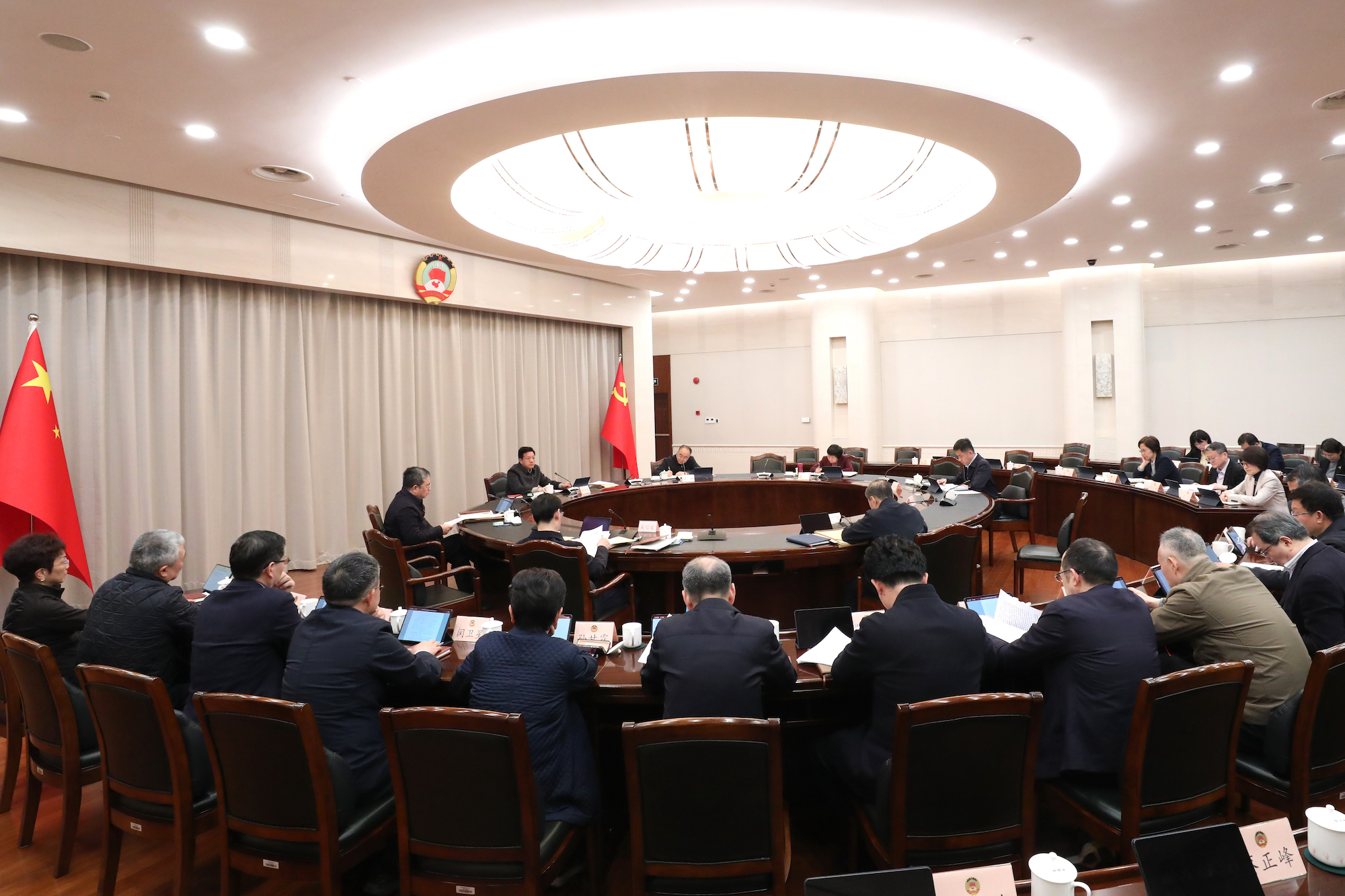 3月30日,市政协十四届八十九次党组会议召开,传达学习习近平总书记近期重要讲话精神及中央重要会议精神。市政协主席、党组书记胡文容主持并讲话。会议要求,要深入学习贯彻习近平总书记在雄安新区考察时的重要讲话精神,深刻领会党中央关于推进区域协调发展的战略部署、高质量发展的实践要求以及一张蓝图绘到底的战略定力,紧密结合上海在推进长三角一体化发展中的使命担当,聚焦以改革创新为引领增强内生发展动力、以要素资源合理集聚为重点激发活力,围绕推进科技创新和产业创新跨区域协同、服务全国统一大市场、加快建设世界级产业集群等重点领域,积极建言献策、广泛凝心聚力,更好服务上海充分发挥龙头带动和示范引领作用。要深入学习贯彻习近平总书记关于做好新时代党的统一战线工作的重要思想,贯彻落实全国统战部长会议精神和市委工作要求,始终坚持党对政协工作的全面领导,深刻把握统一战线凝聚人心、汇聚力量的政治作用,压实统战工作主体责任,加强思想政治引领,广泛凝聚各界共识,不断巩固团结奋斗的共同思想政治基础,不断促进“五大关系”和谐,团结引导各党派团体和各族各界人士积极投身上海现代化建设生动实践。