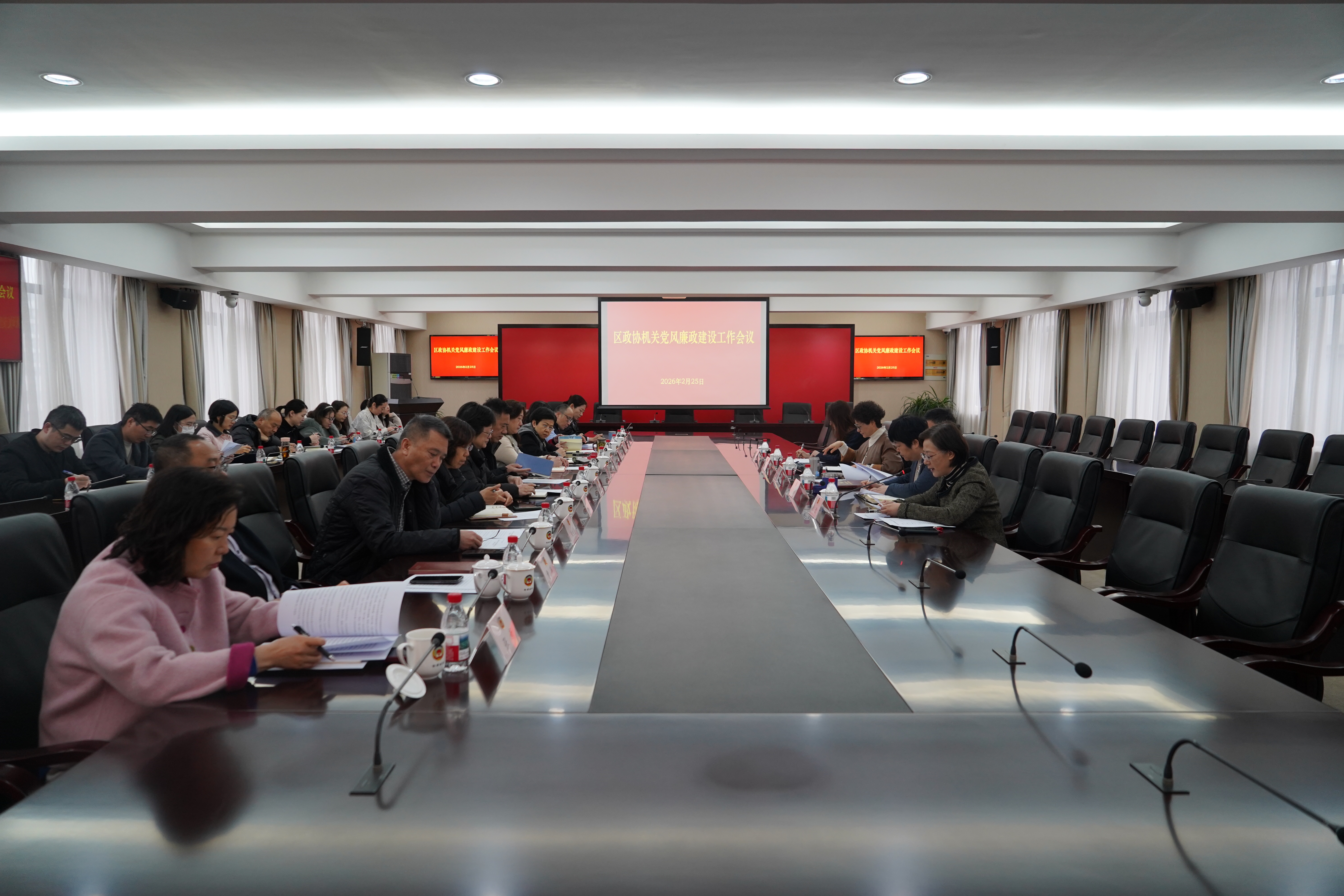2月25日,区政协机关召开党风廉政建设工作会议。区政协党组书记、主席邰荀出席并讲话。区政协党组副书记、副主席顾登妹,区政协党组成员、副主席明依,区政协党组成员、秘书长、机关党组书记、办公室主任徐进出席会议。