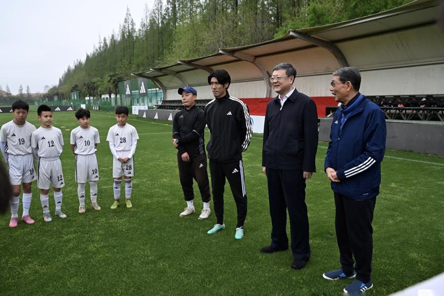 调研期间,市领导还前往上海根宝足球基地,了解基地创业发展历程和青少年球员培养工作,在足球场察看青少年球员日常训练情况,与大家亲切交流。基地创始人徐根宝以“足球明星的摇篮、走向世界的希望”为目标,深耕青训二十余载,培养出一批知名球员。陈吉宁说,徐指导对足球事业的热爱、对青训工作的专注令人敬佩。青训在推动足球发展方面具有基础性支撑性作用,要遵循足球发展规律,加快完善青训体系,强化支撑保障,为青少年球员训练比赛、成长成才创造更好条件、提供更多机会。要支持基地更好发挥引领带动作用,以高水平高质量青训,为城市为国家培养更多优秀足球人才。中国船舶集团有限公司董事长徐鹏参加相关调研。