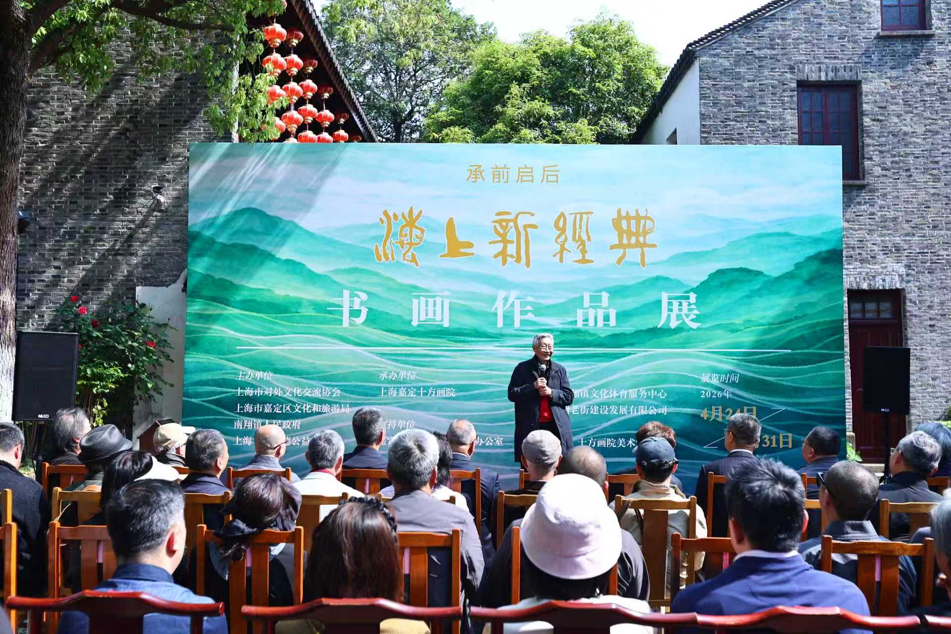4月24日下午,“承前启后——海上新经典书画作品展”在上海南翔镇檀园十方画院美术馆正式拉开帷幕。此次展览由上海市对外文化交流协会、嘉定区文化和旅游局、南翔镇人民政府、上海十方福德公益基金会主办,上海嘉定十方画院承办,汇聚了海上画坛多位中青年艺术家的七十余幅精心力作。作品题材涵盖人物、山水、花鸟及书法,风格上将传统笔墨的厚重典雅与现代语言的创新手法完美融合,既凸显了“承前启后”的主题,展现海派艺术“兼容并蓄、雅俗共赏”的精神内核,又彰显了“笔墨映时代”的鲜明特质。